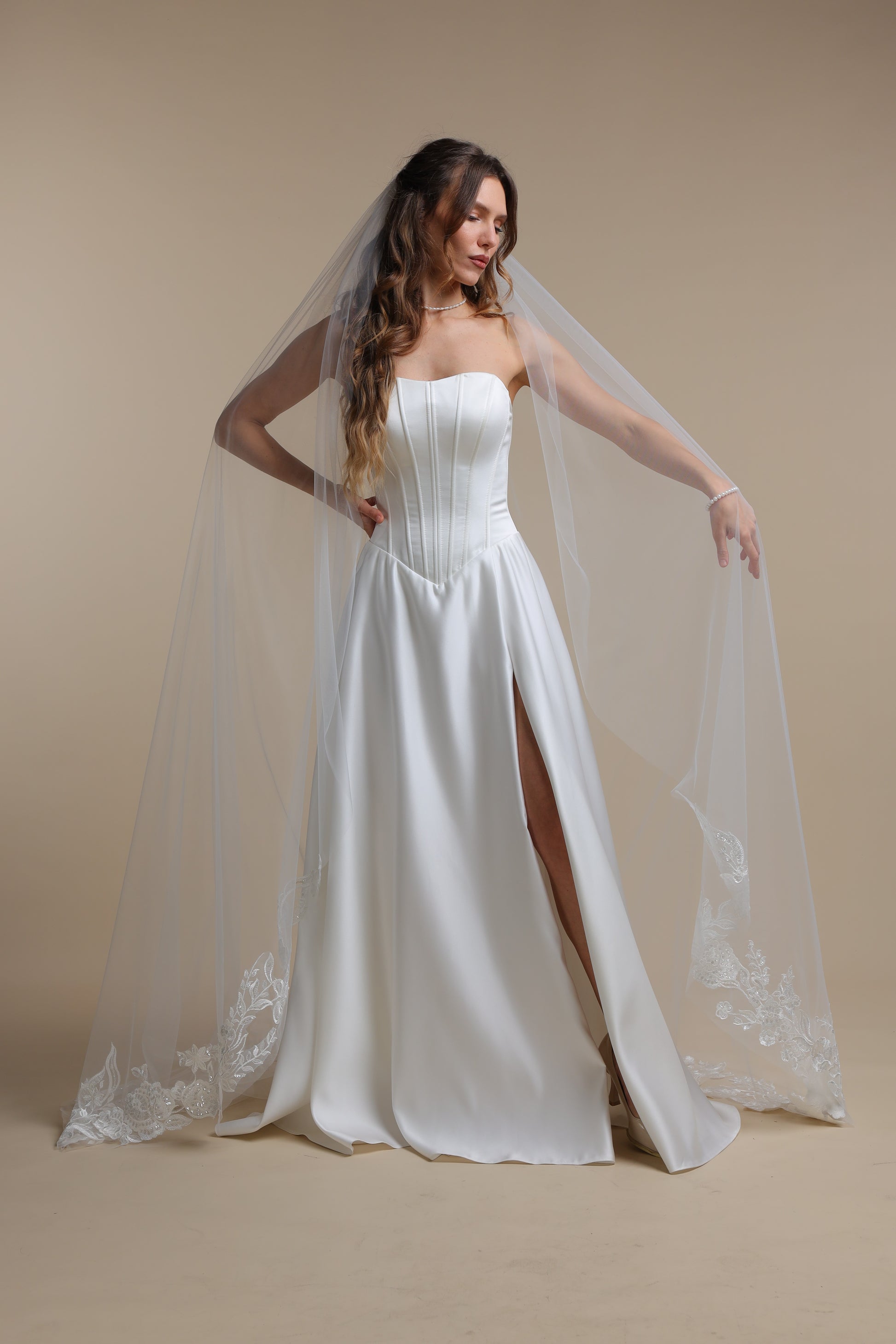 - Made-to-measure veil: production time takes about 1 to 3 weeks to create + shipping time from order placement.