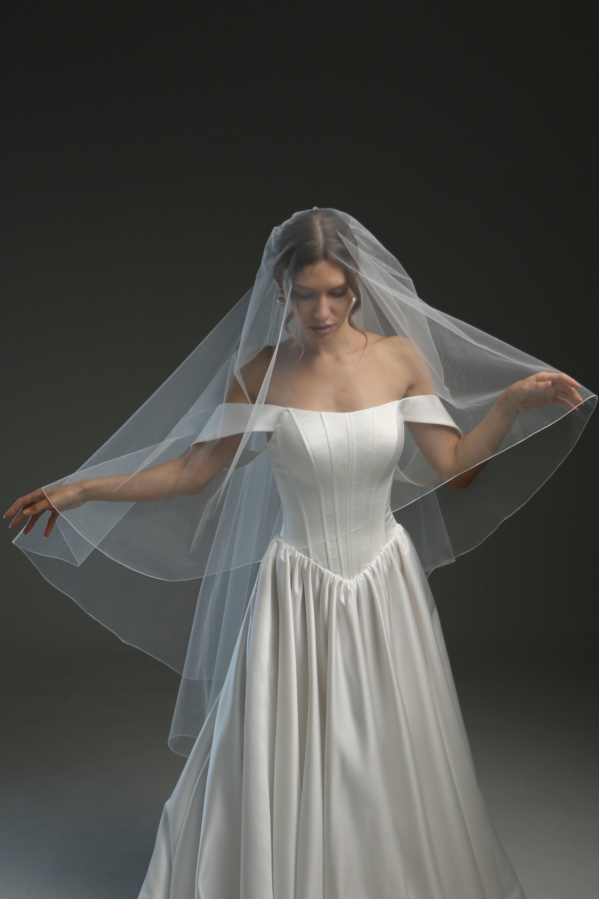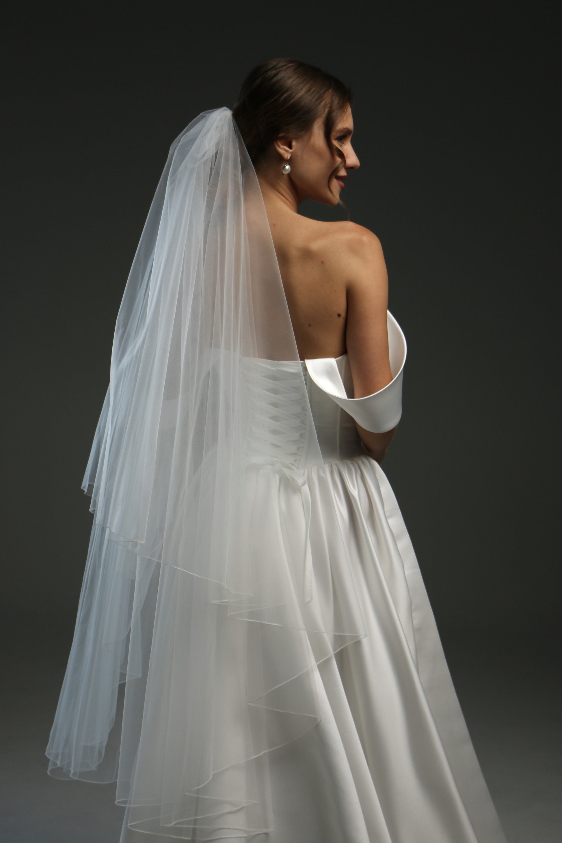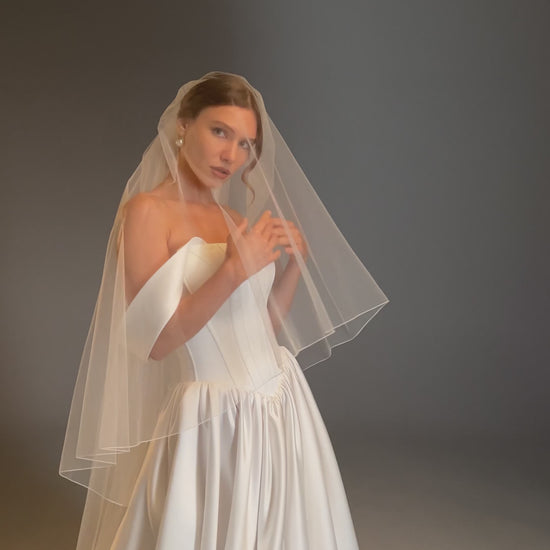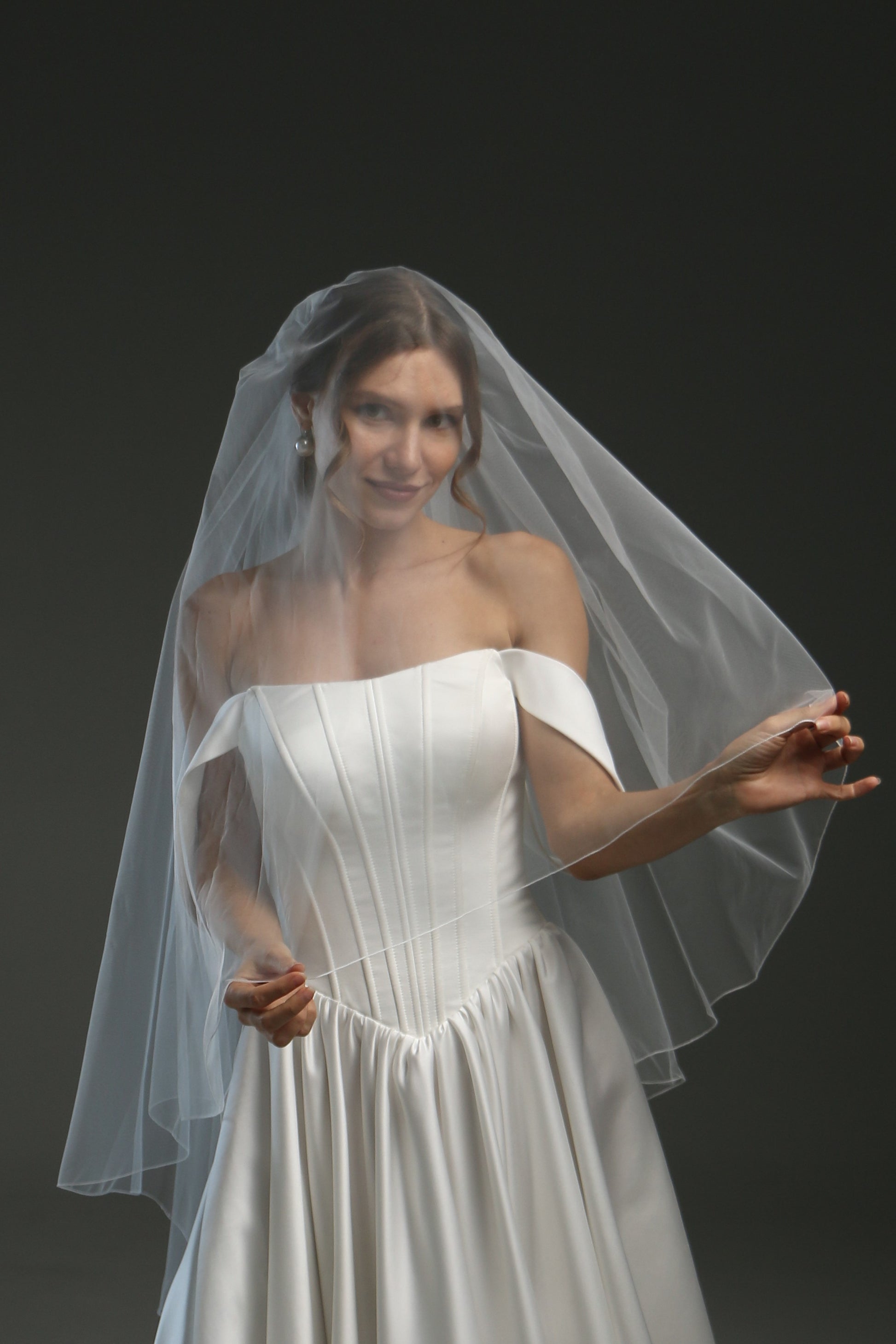 Classic Sheer Bridal Veil – Soft Tulle, 2 Layers, Floor Length with Pencil Edge - M1043