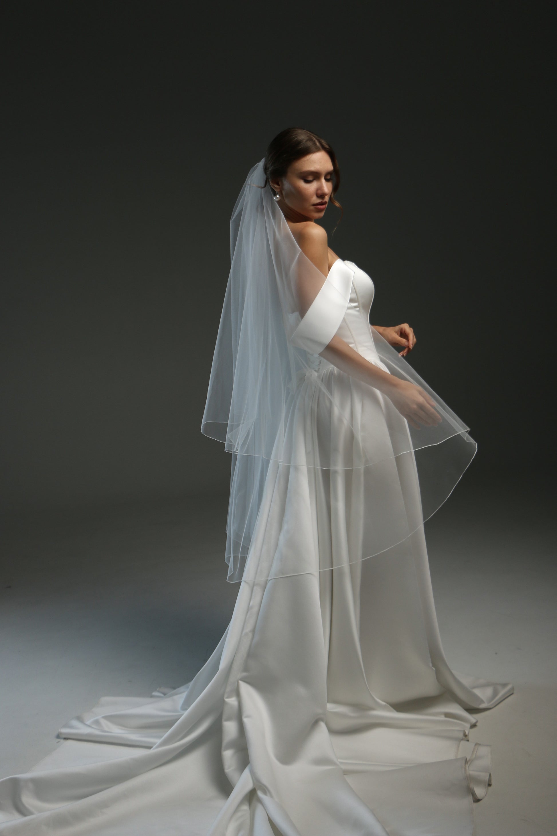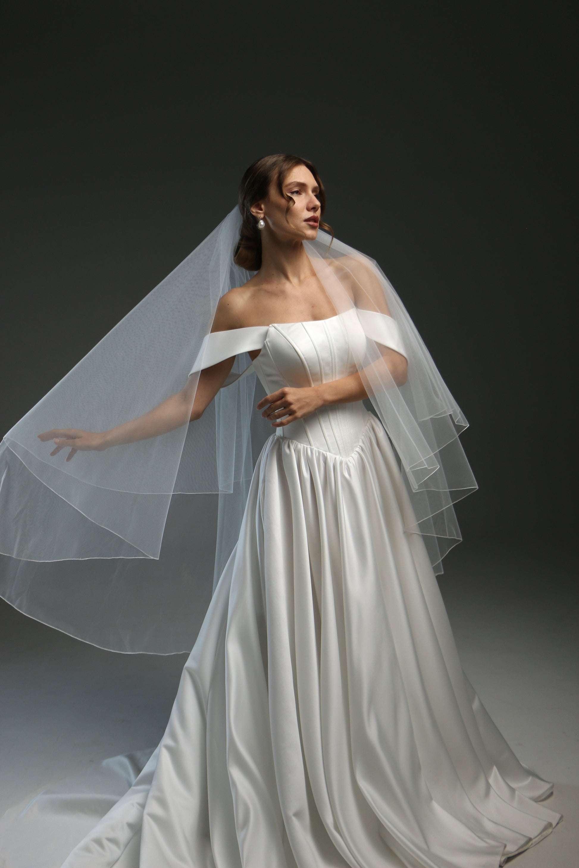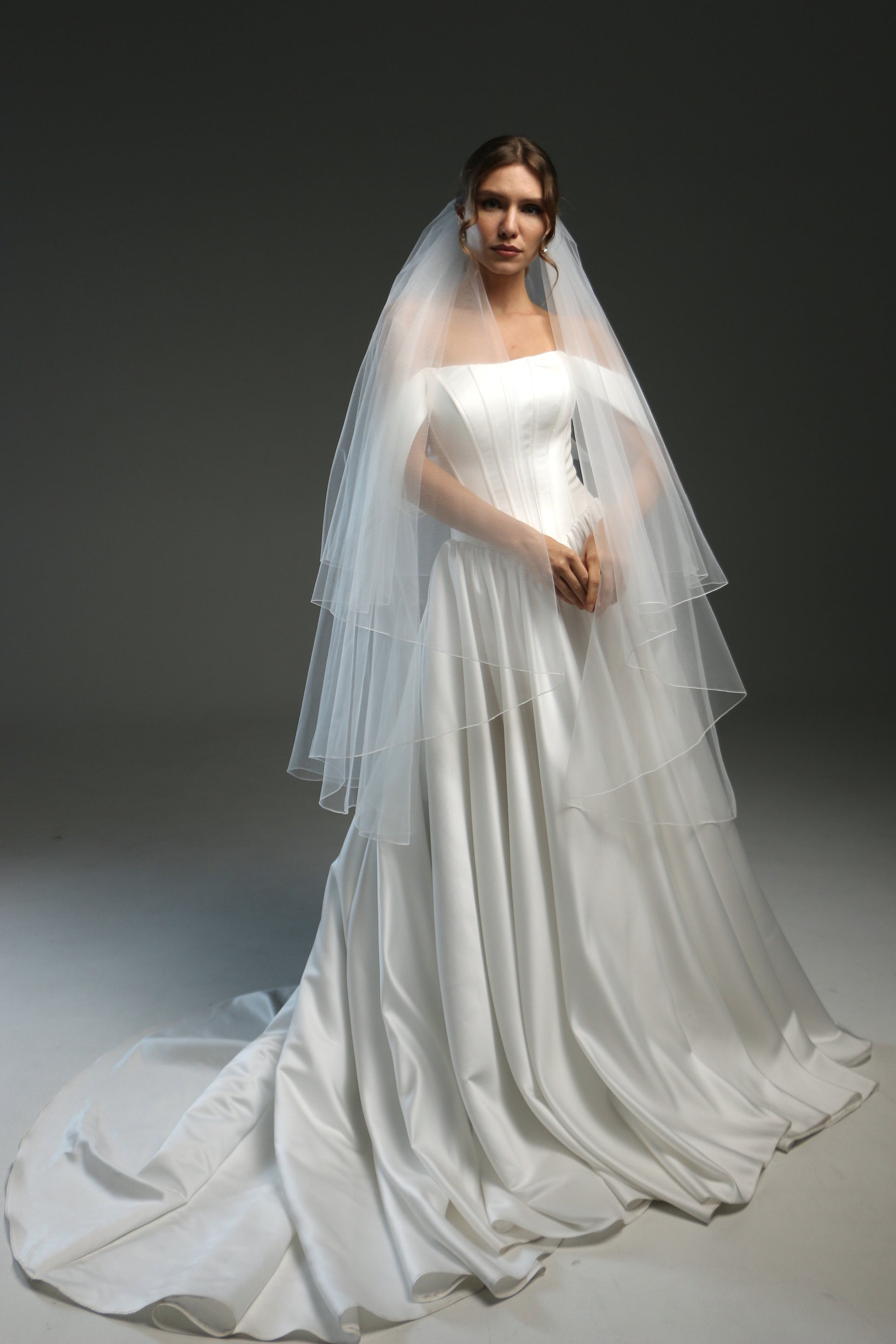 Classic Sheer Bridal Veil – Soft Tulle, 2 Layers, Floor Length with Pencil Edge - M1043