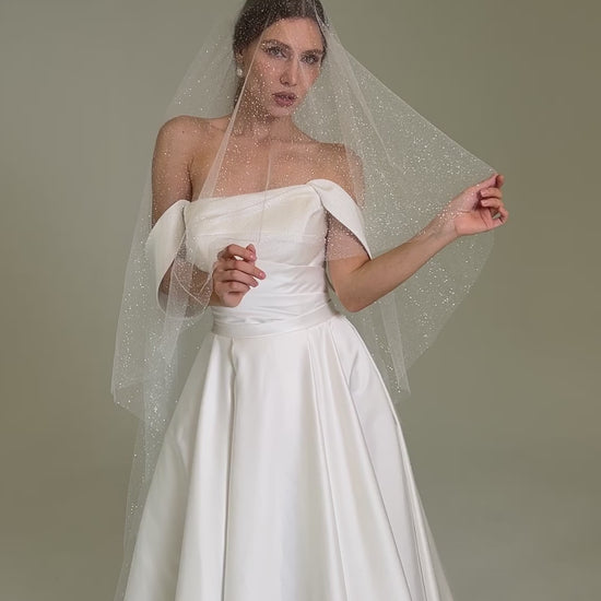 Glitter veil in two tier | Sparkly cathedral veil | Bridal shimmer short veil Soft two-tier bridal - M1020