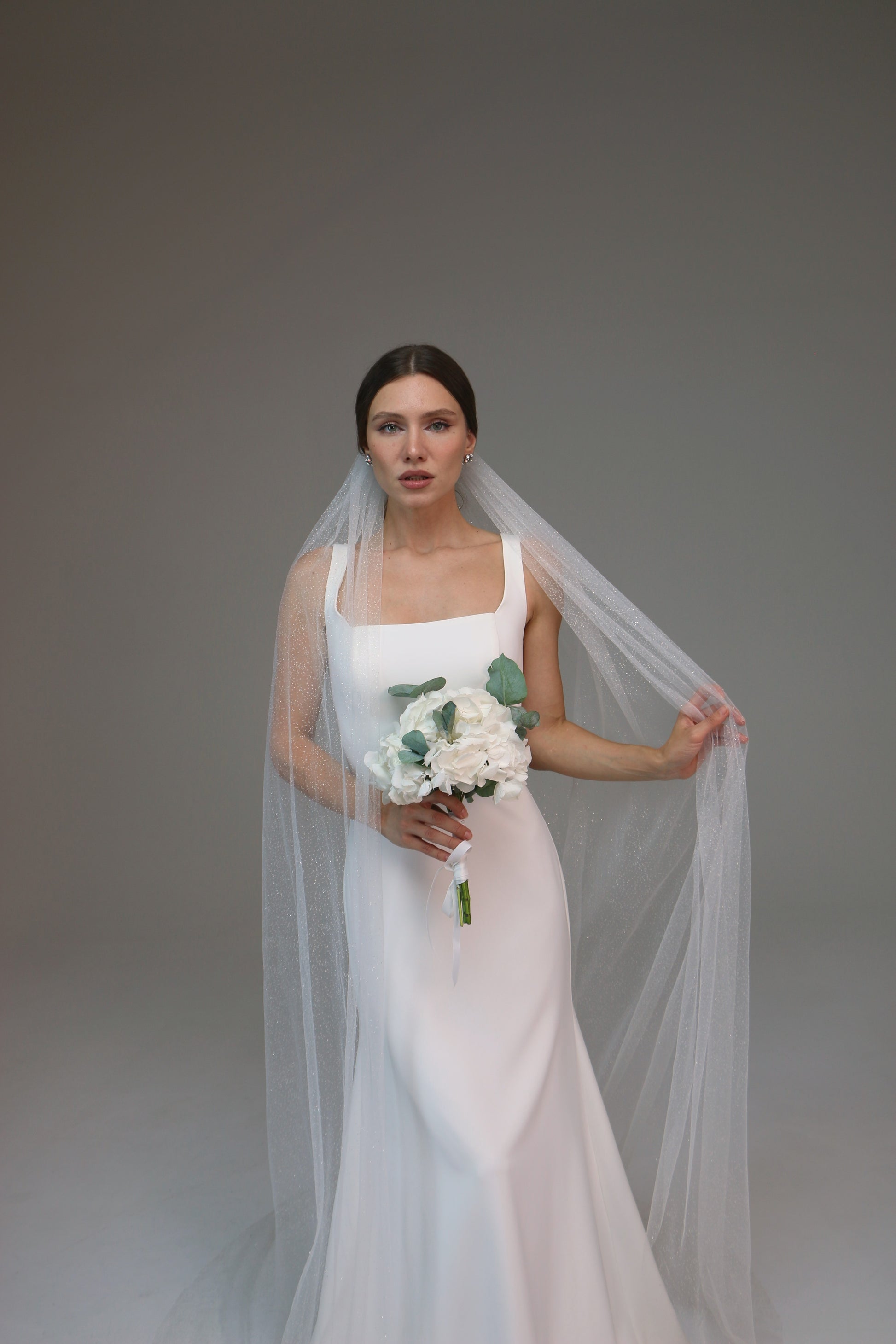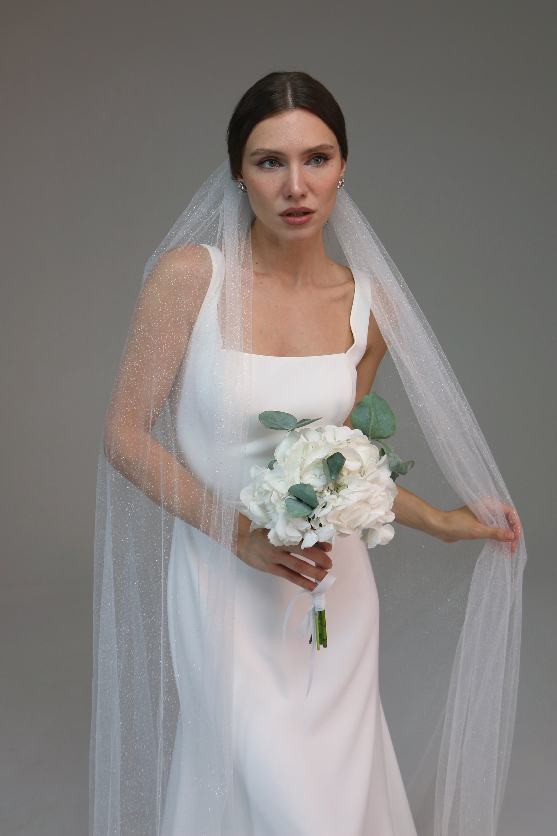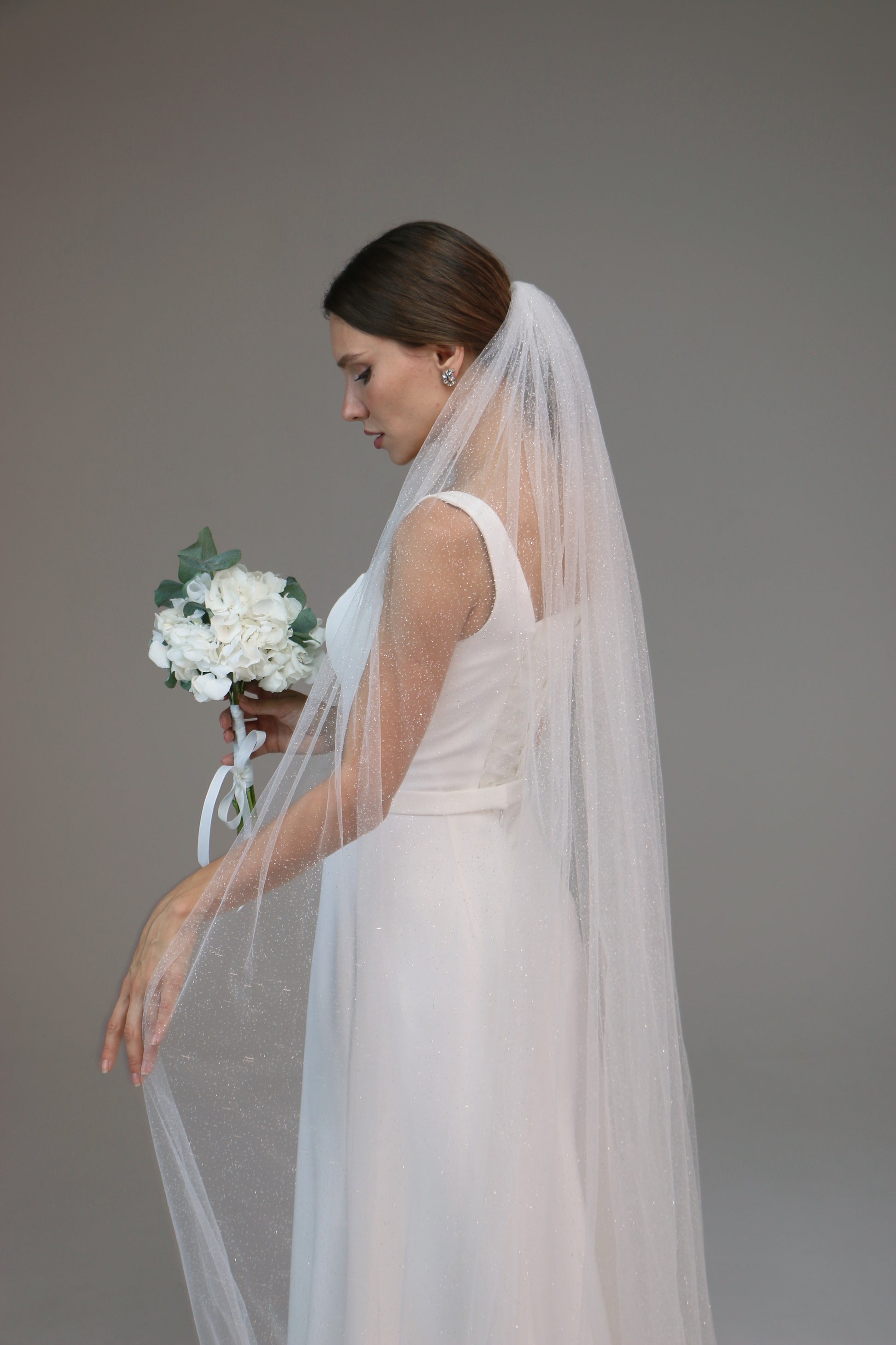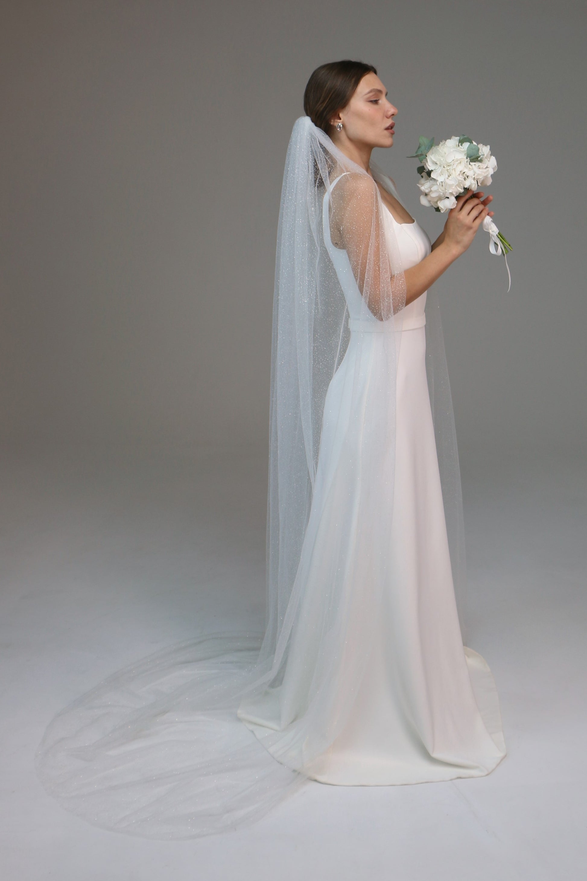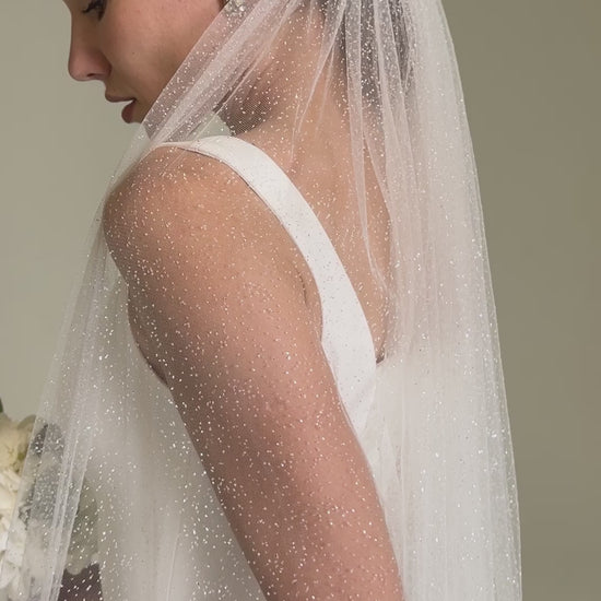 Glitter wedding veil, Sparkle tulle bridal veil, Cathedral shimmer wedding veil - M1024