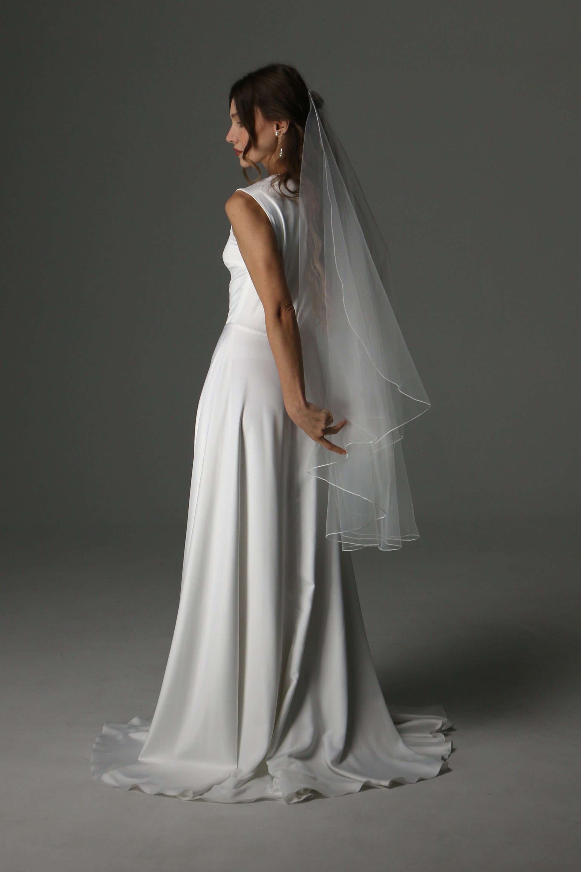 One Tier Cascade Bridal Veil with Pencil Edge | Simple Wedding Veil - M1078