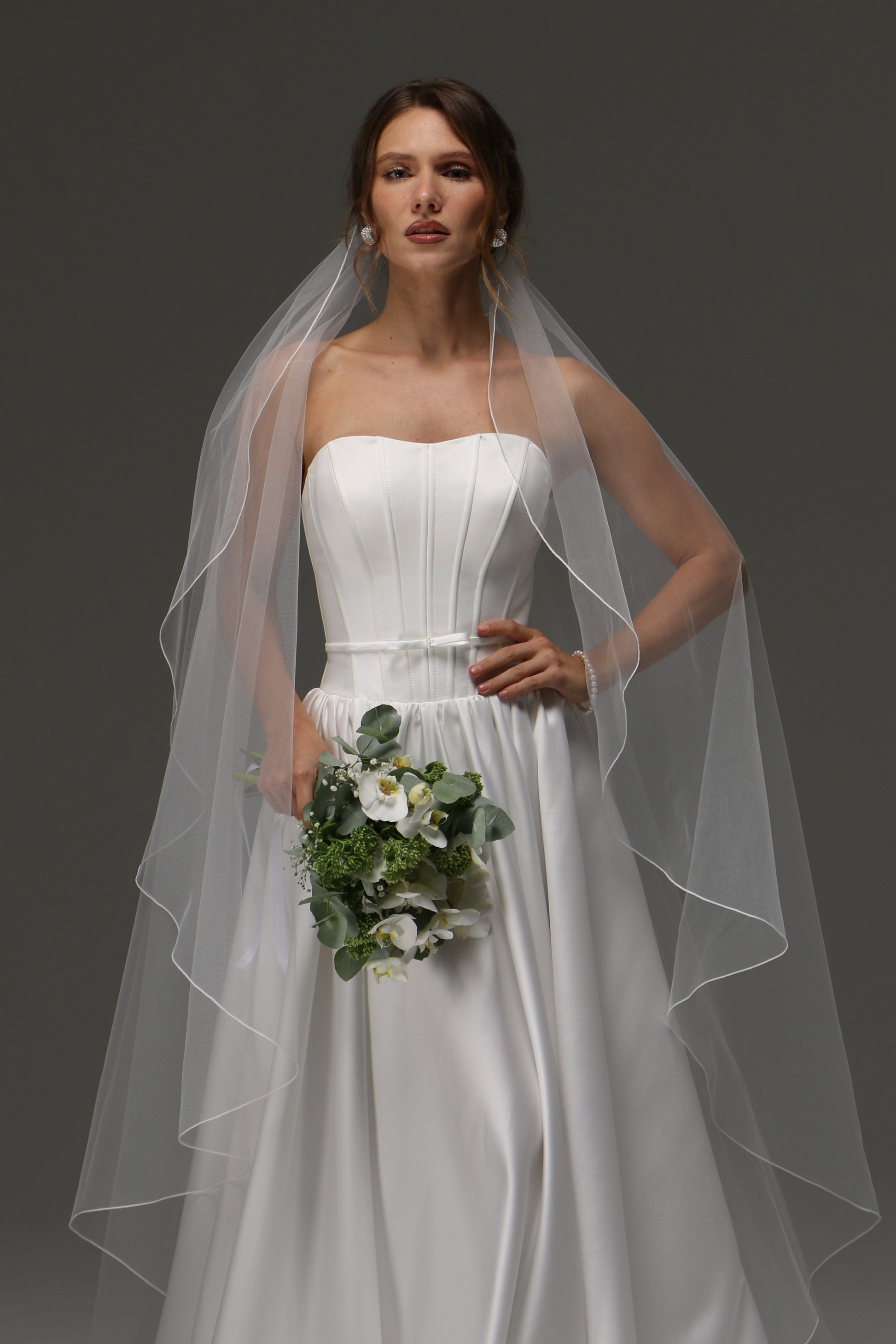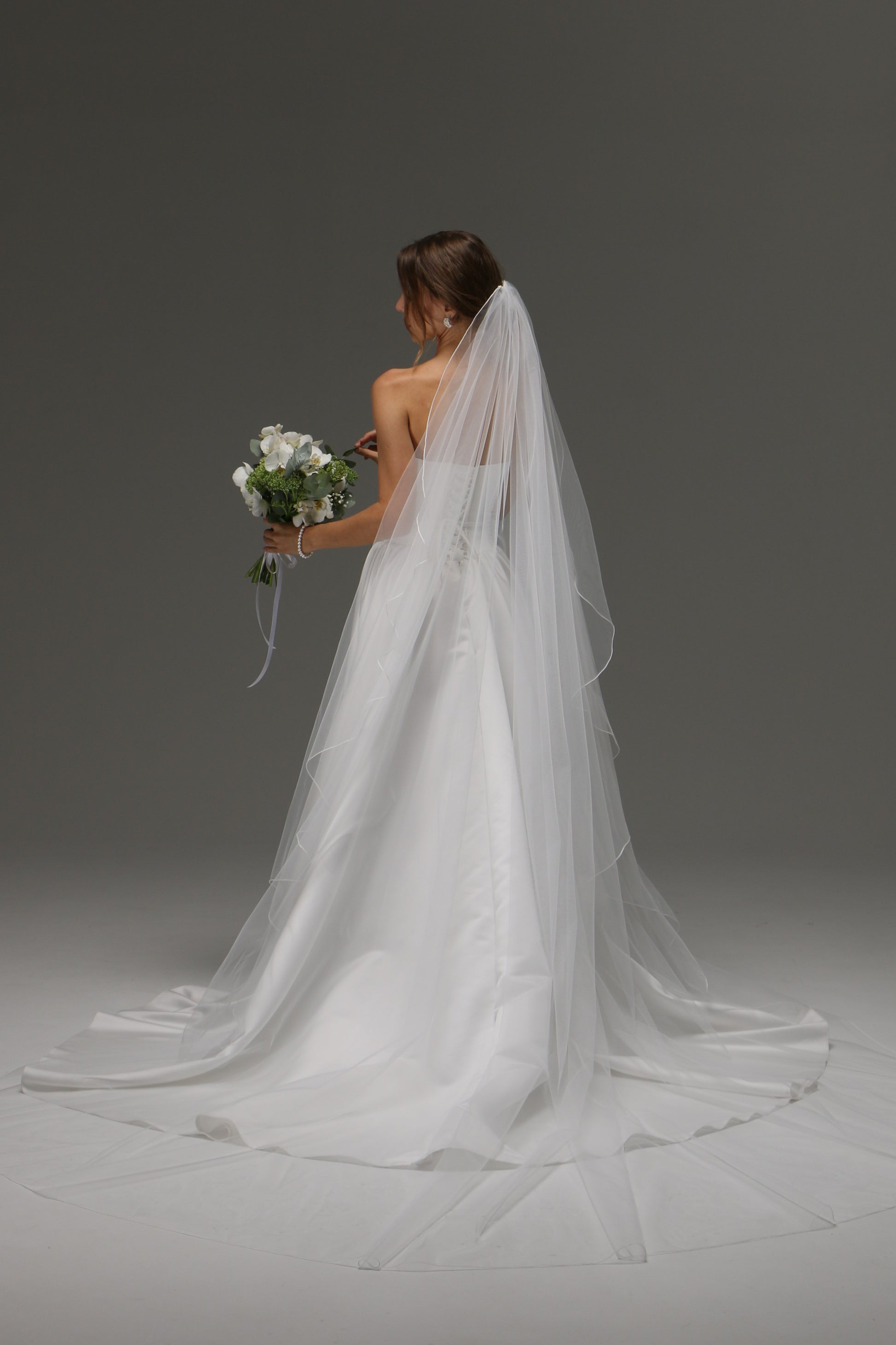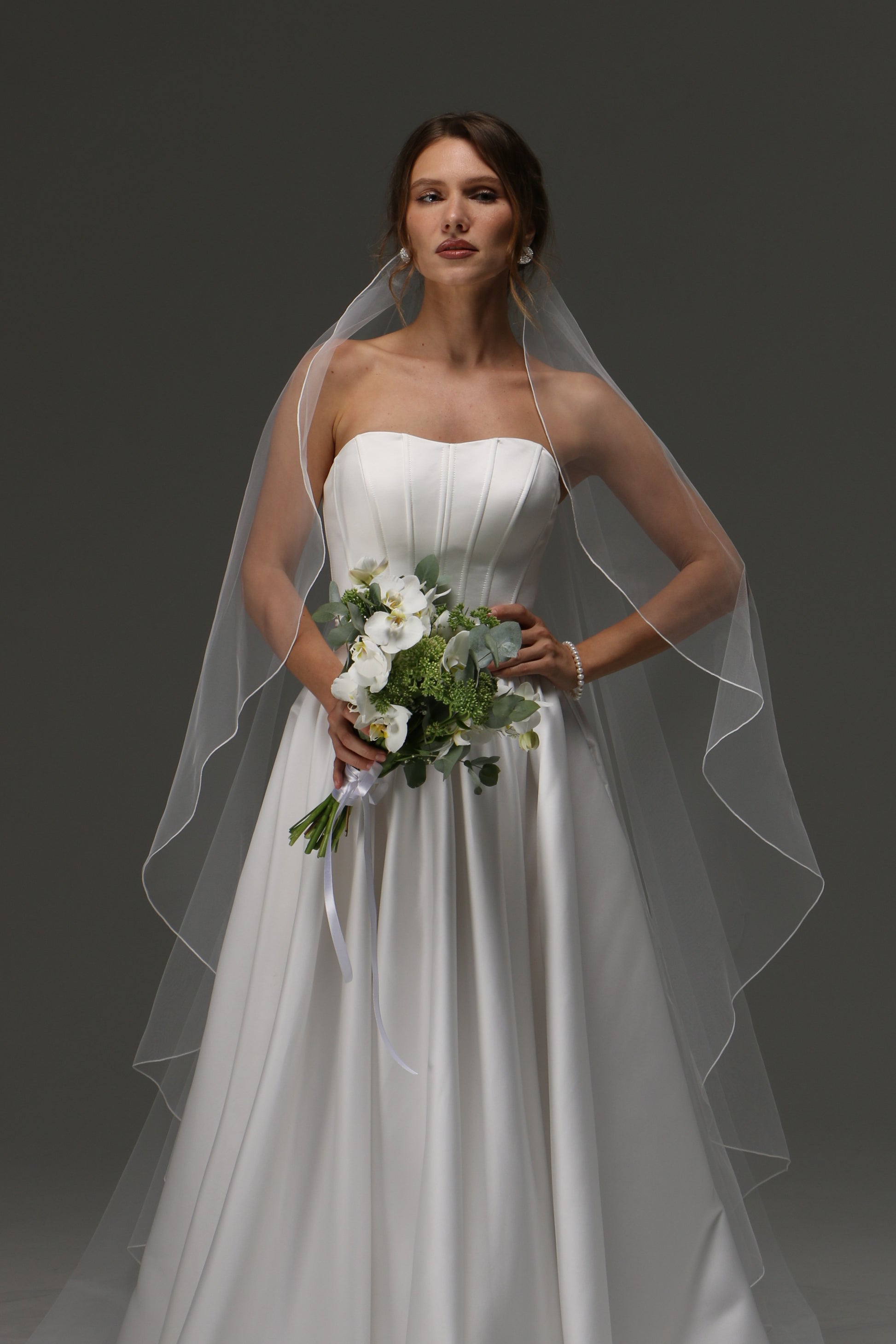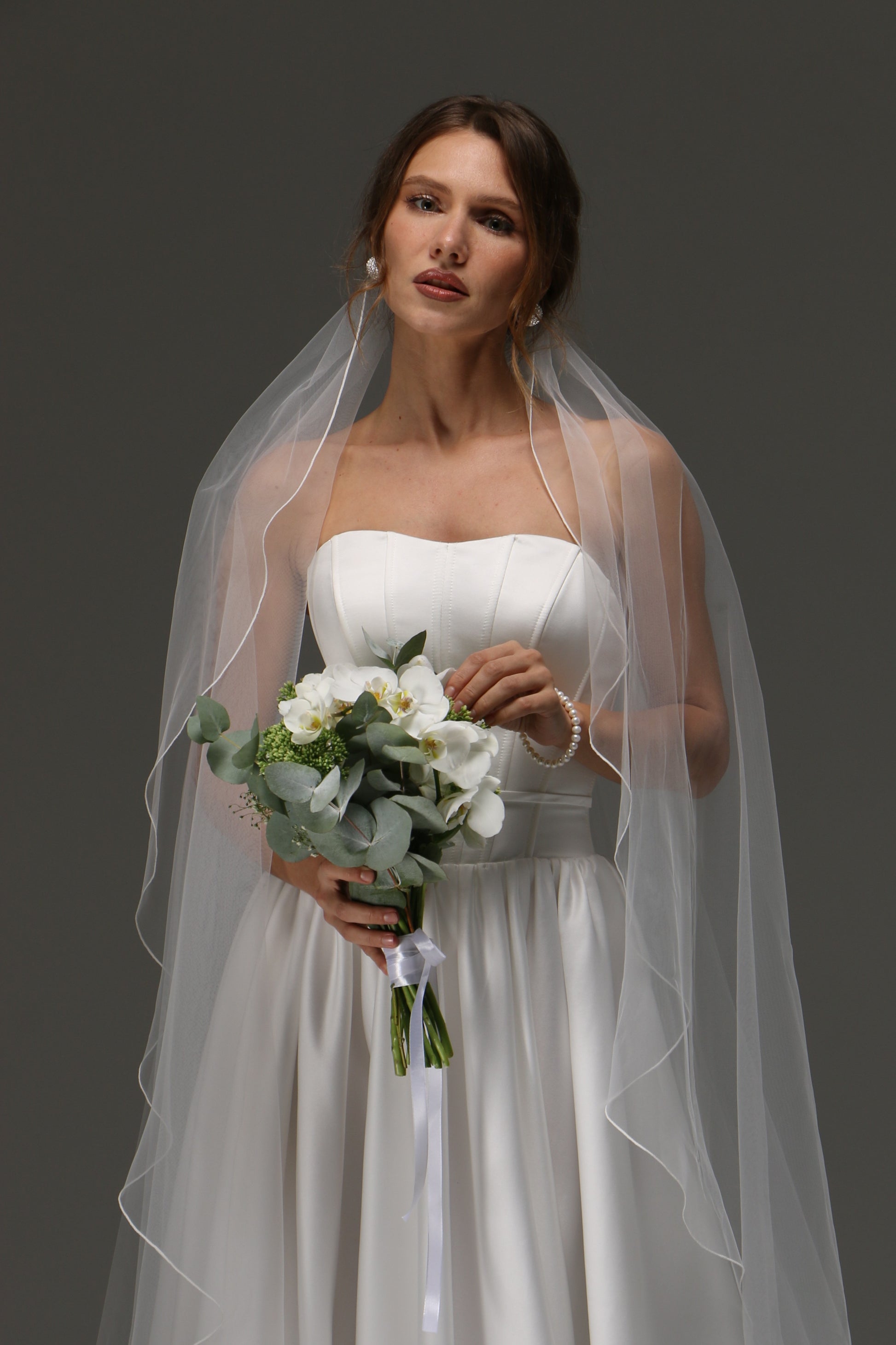 One Tier Cascade Pencil Edge Wedding Veil – Soft Minimal Sheer Bridal Veil, simple veil - M1035