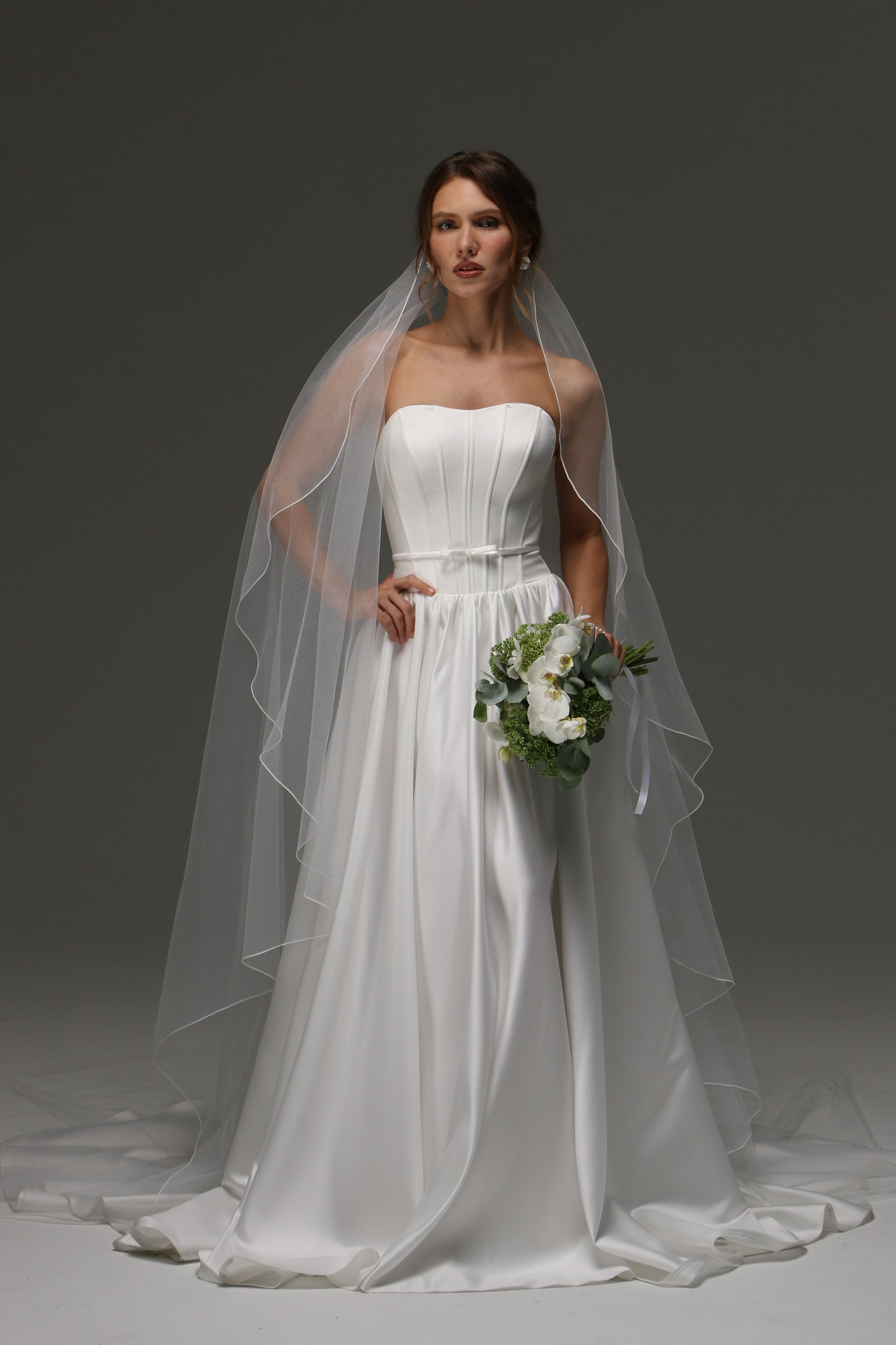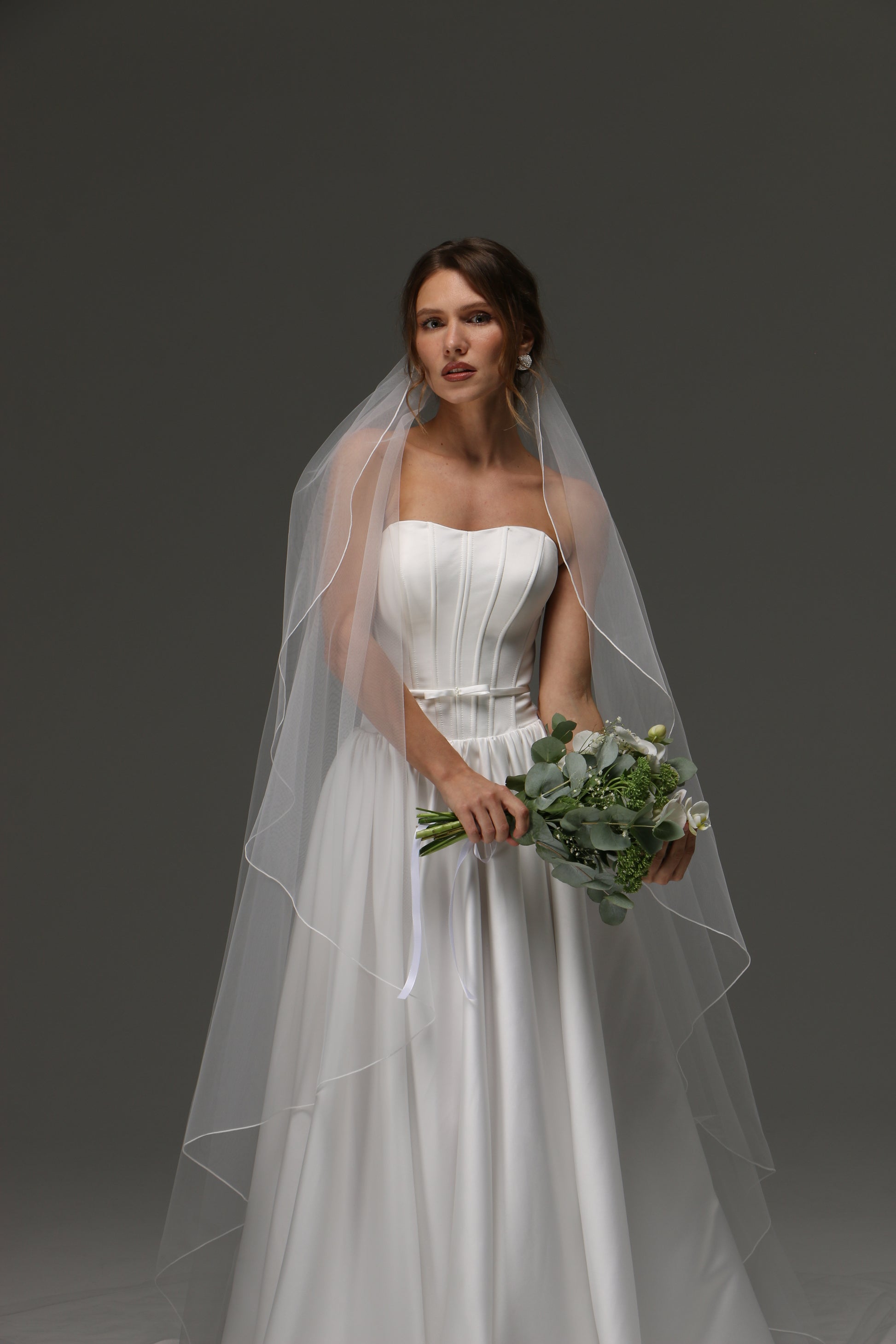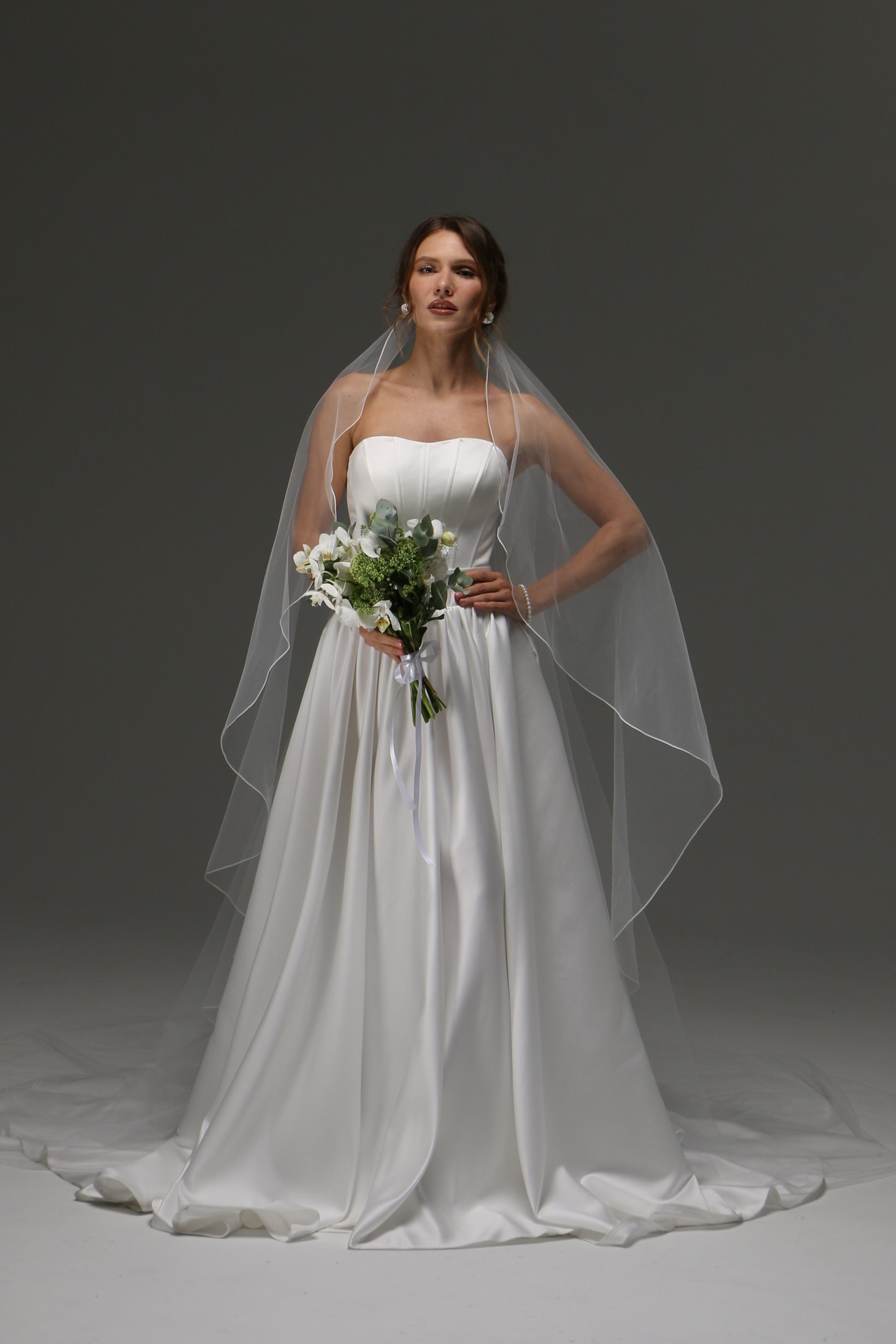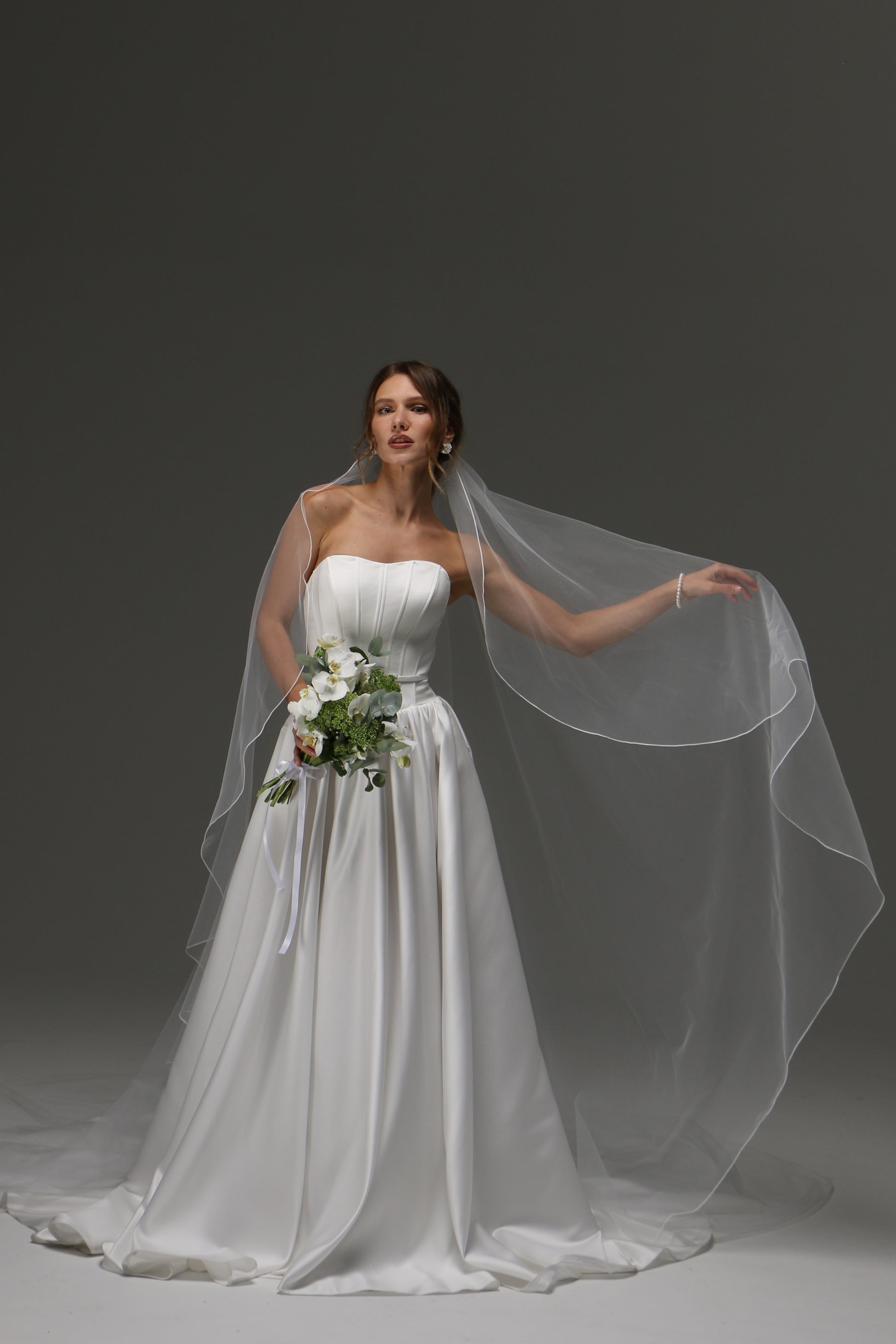 One Tier Cascade Pencil Edge Wedding Veil – Soft Minimal Sheer Bridal Veil, simple veil - M1035