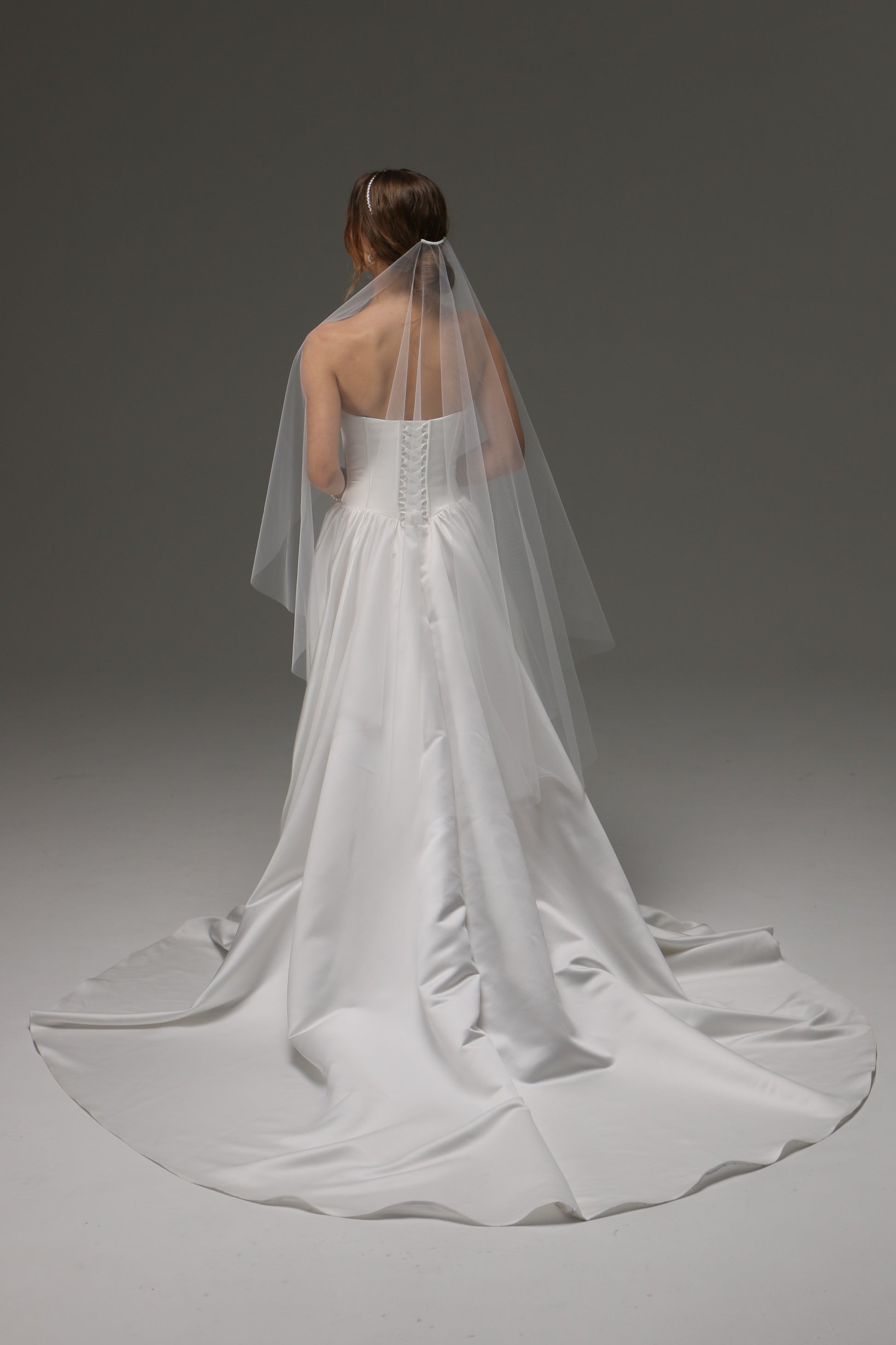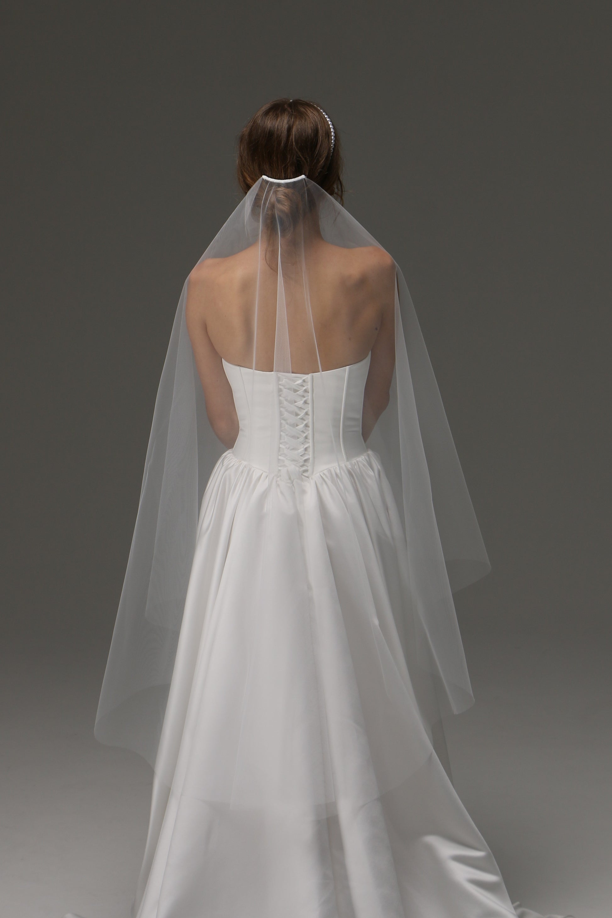 One Tier Cascade Veil with Raw Edge | Soft Ivory Cathedral Wedding Veil | Classic Soft Bridal Veil - M1036