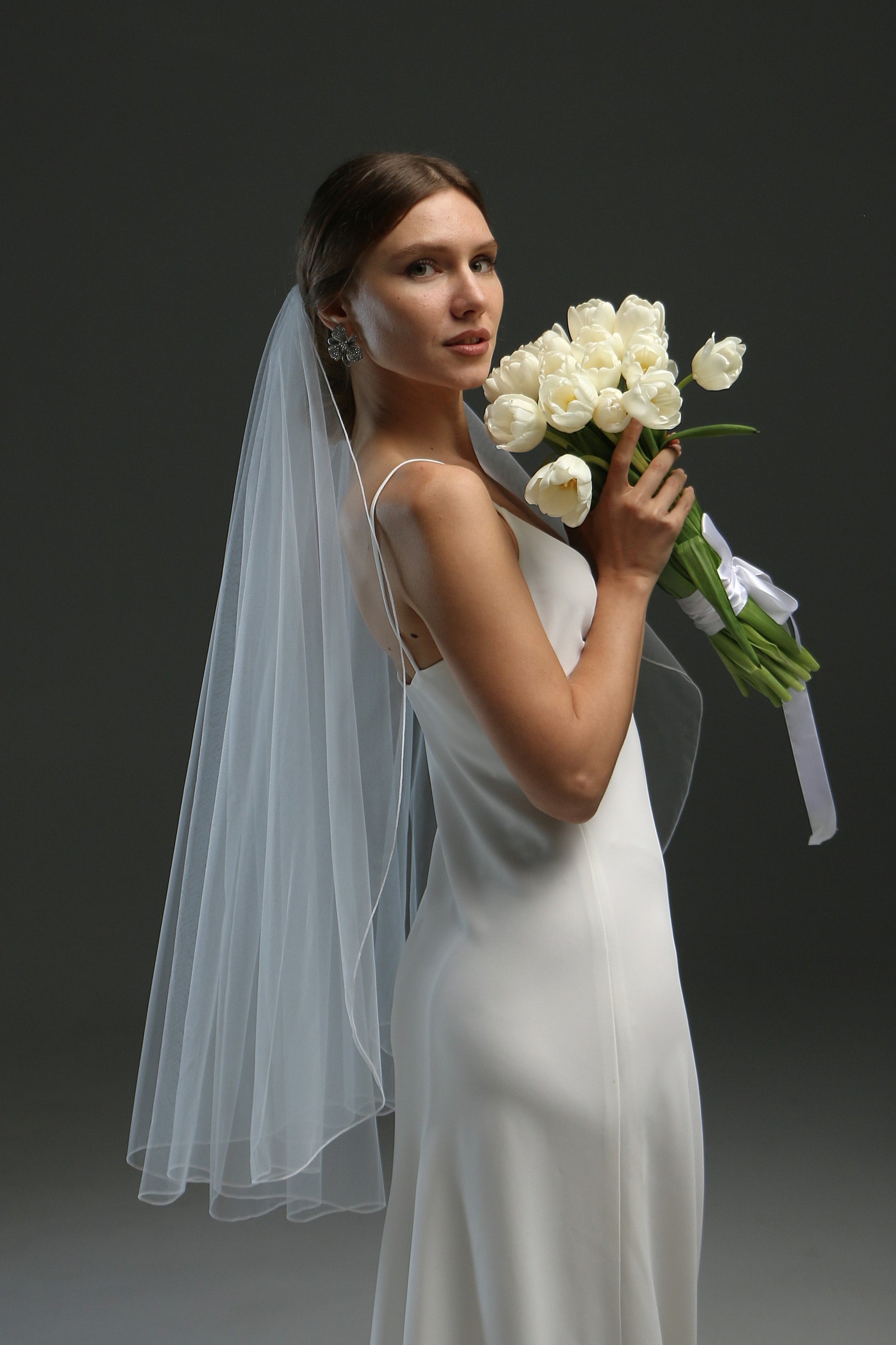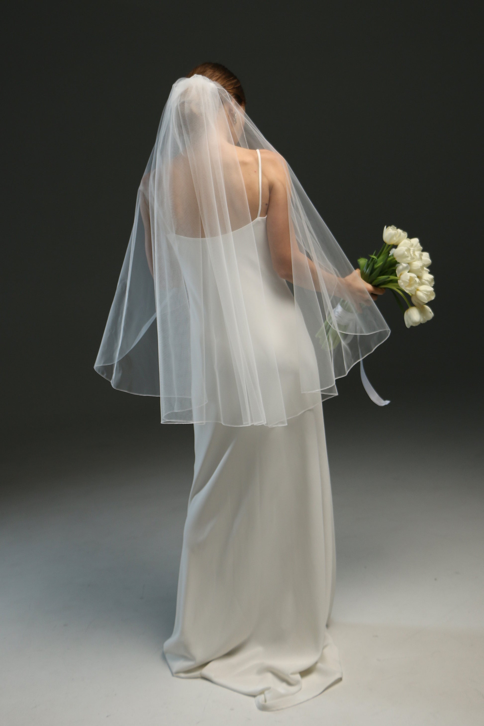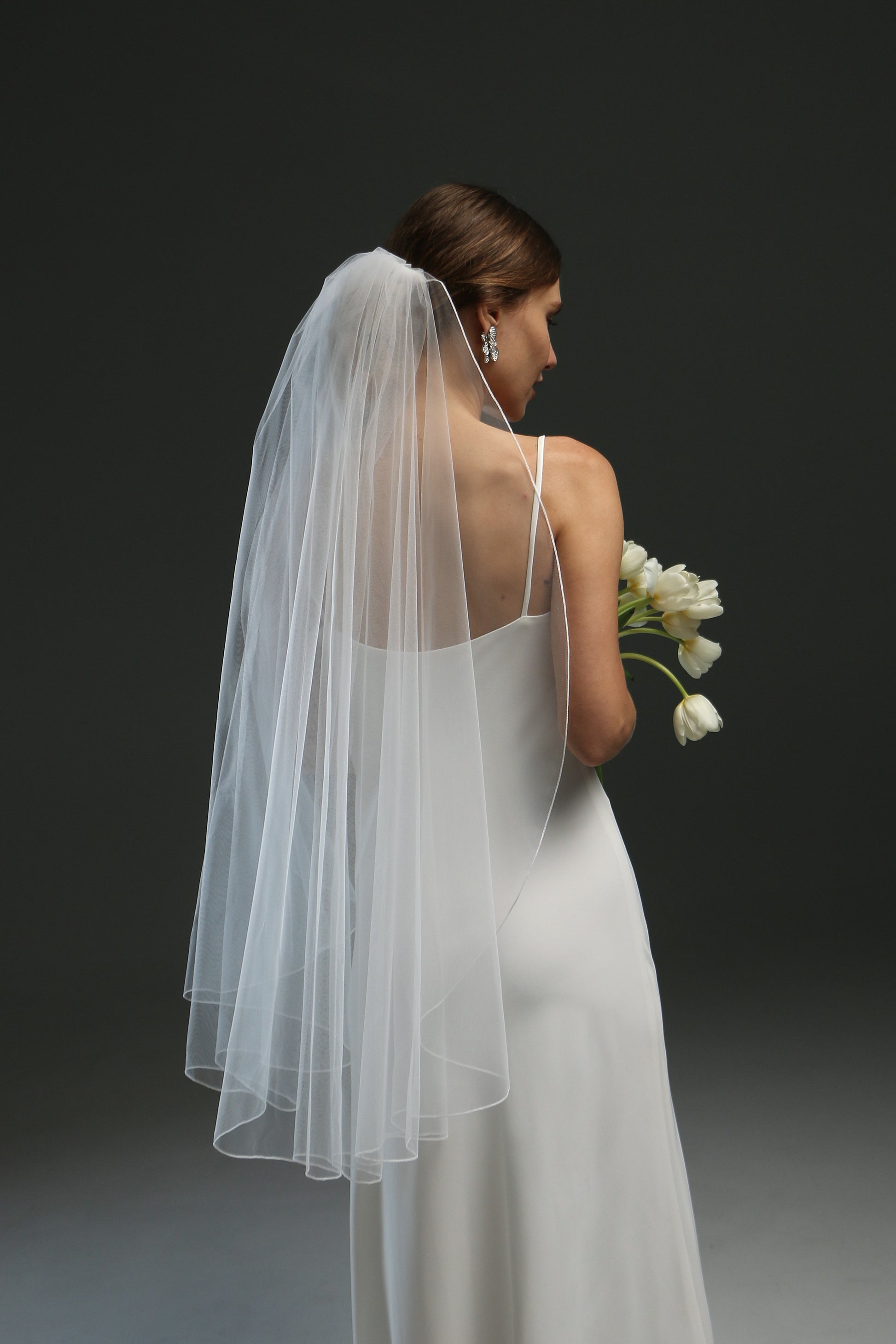 Simple 1-Tier Fingertip Wedding Veil with Pencil Edge - M1054