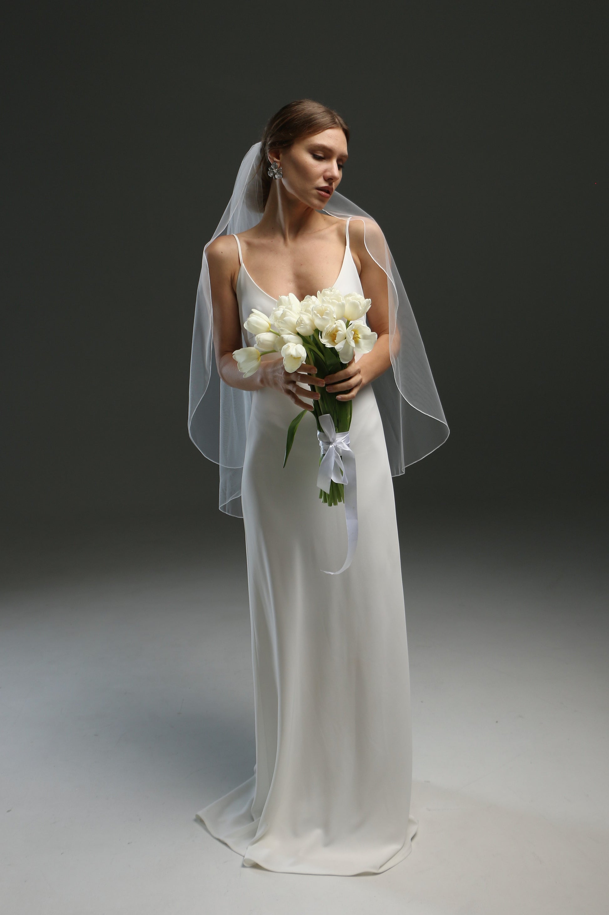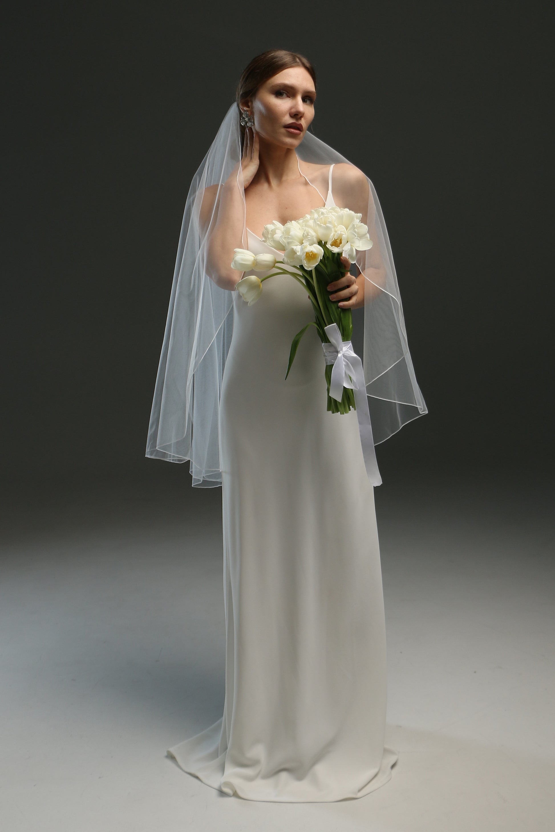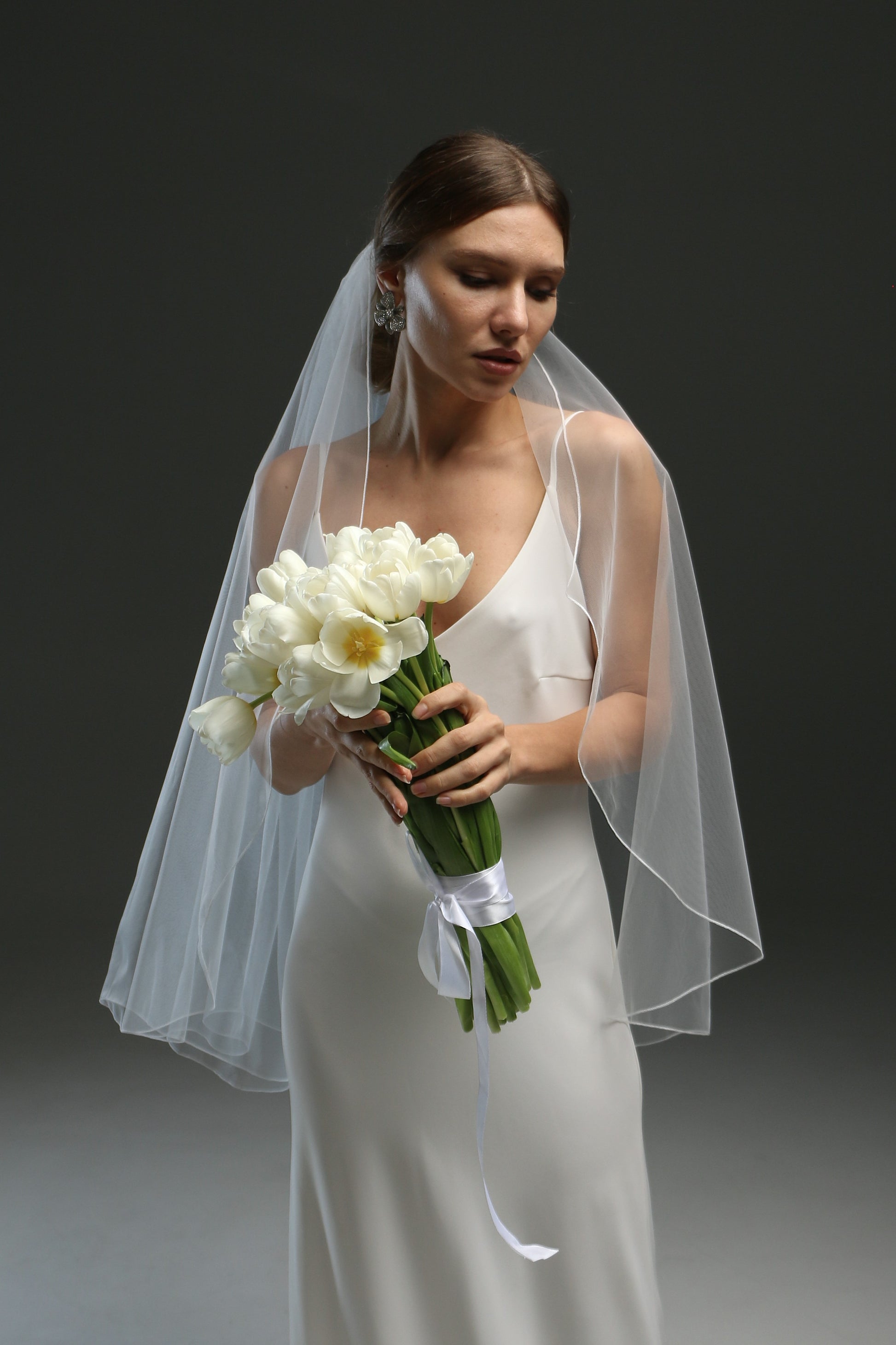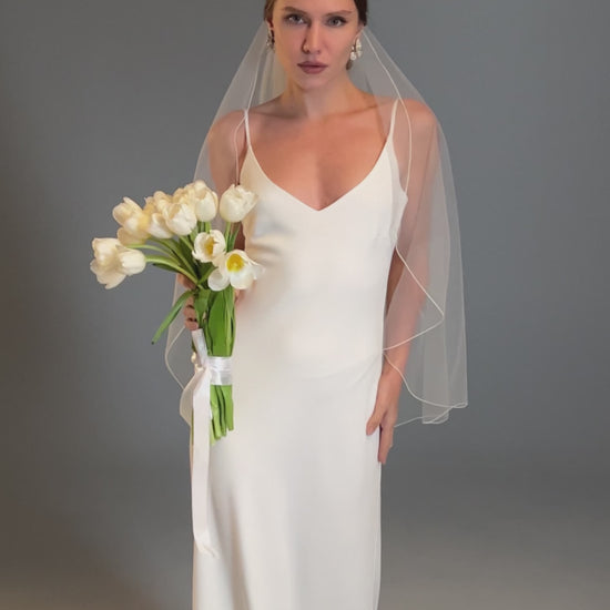Simple 1-Tier Fingertip Wedding Veil with Pencil Edge - M1054