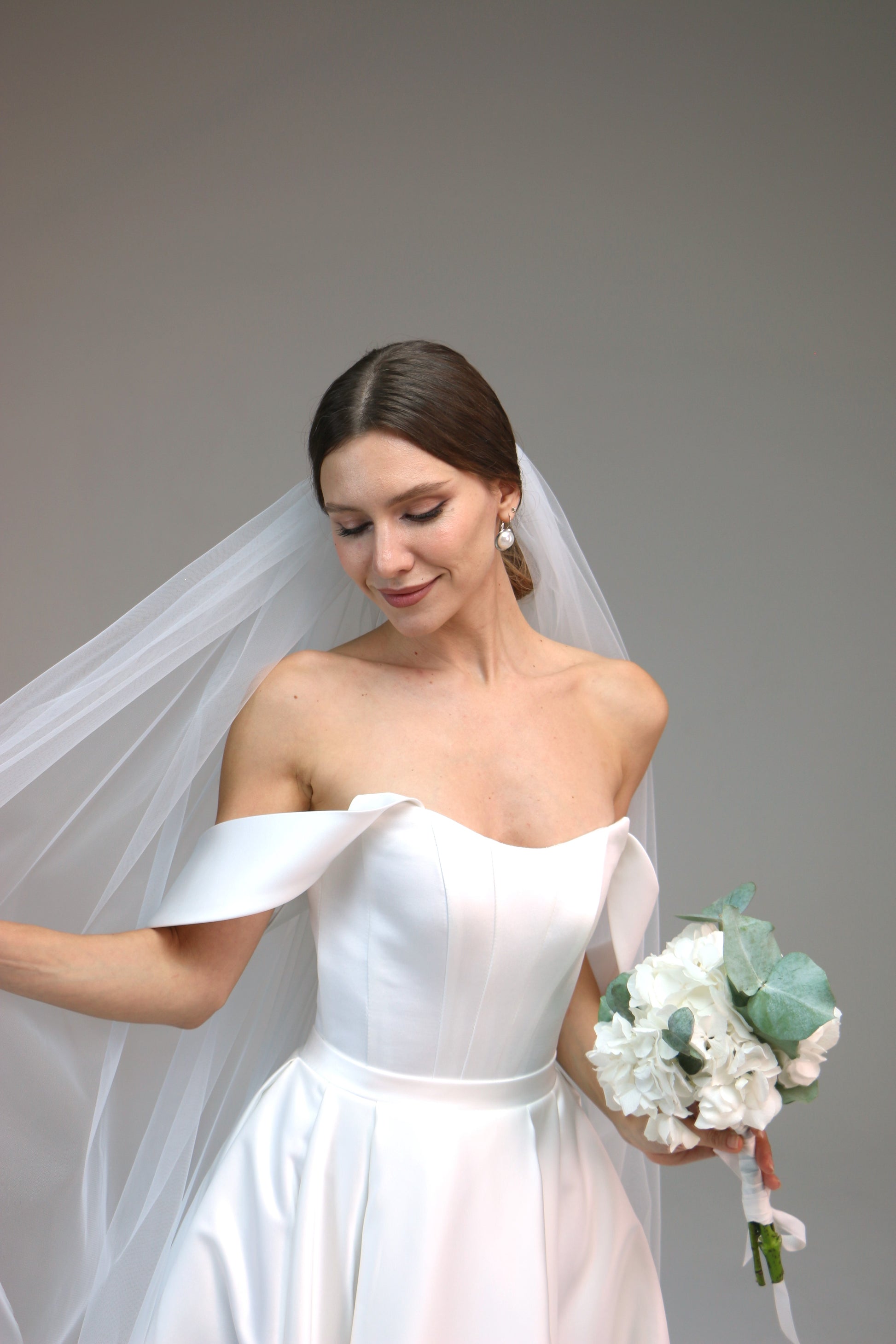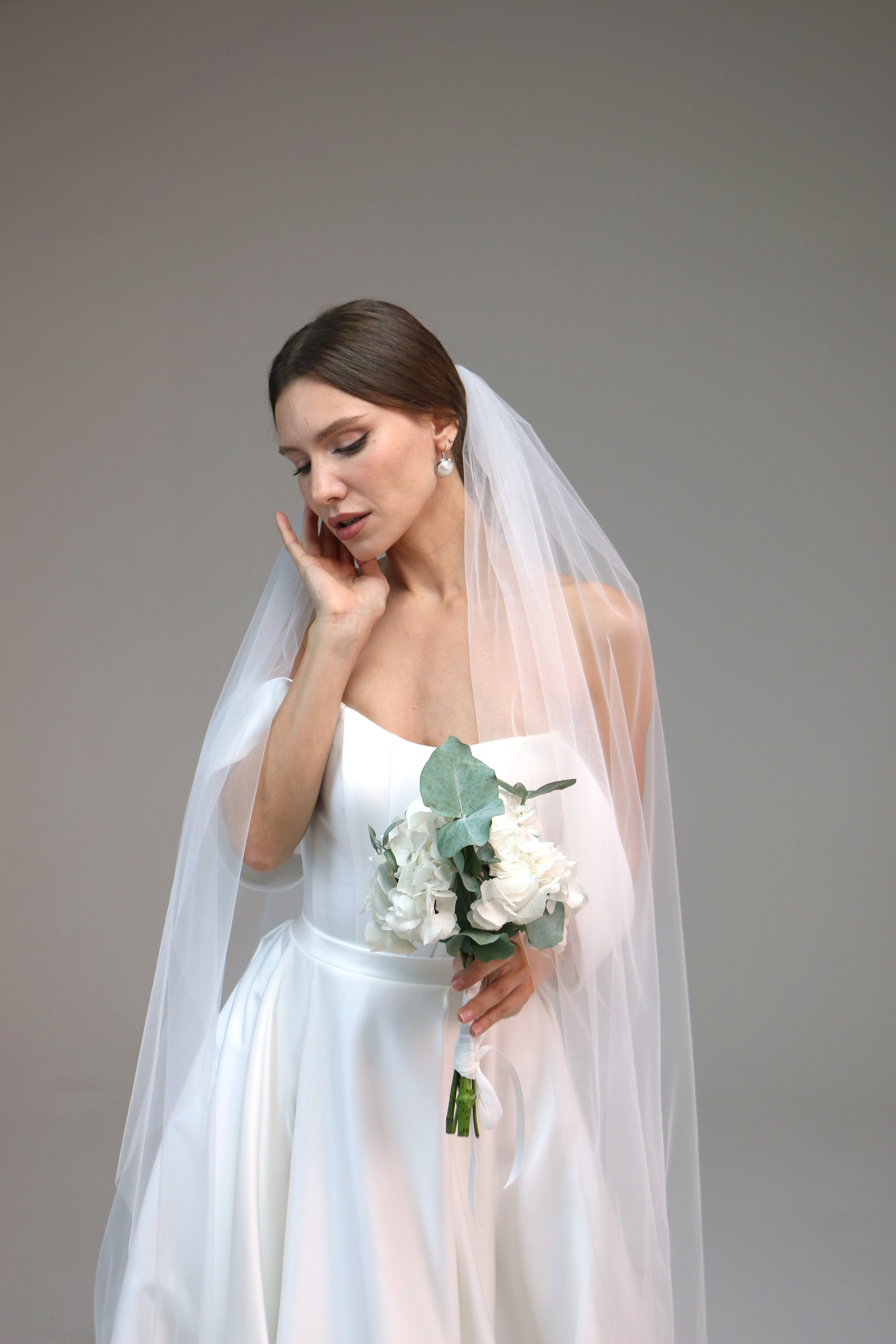 Single layer soft simple wedding veil,Simple wedding veil ,One tier bridal veil soft - M1023
