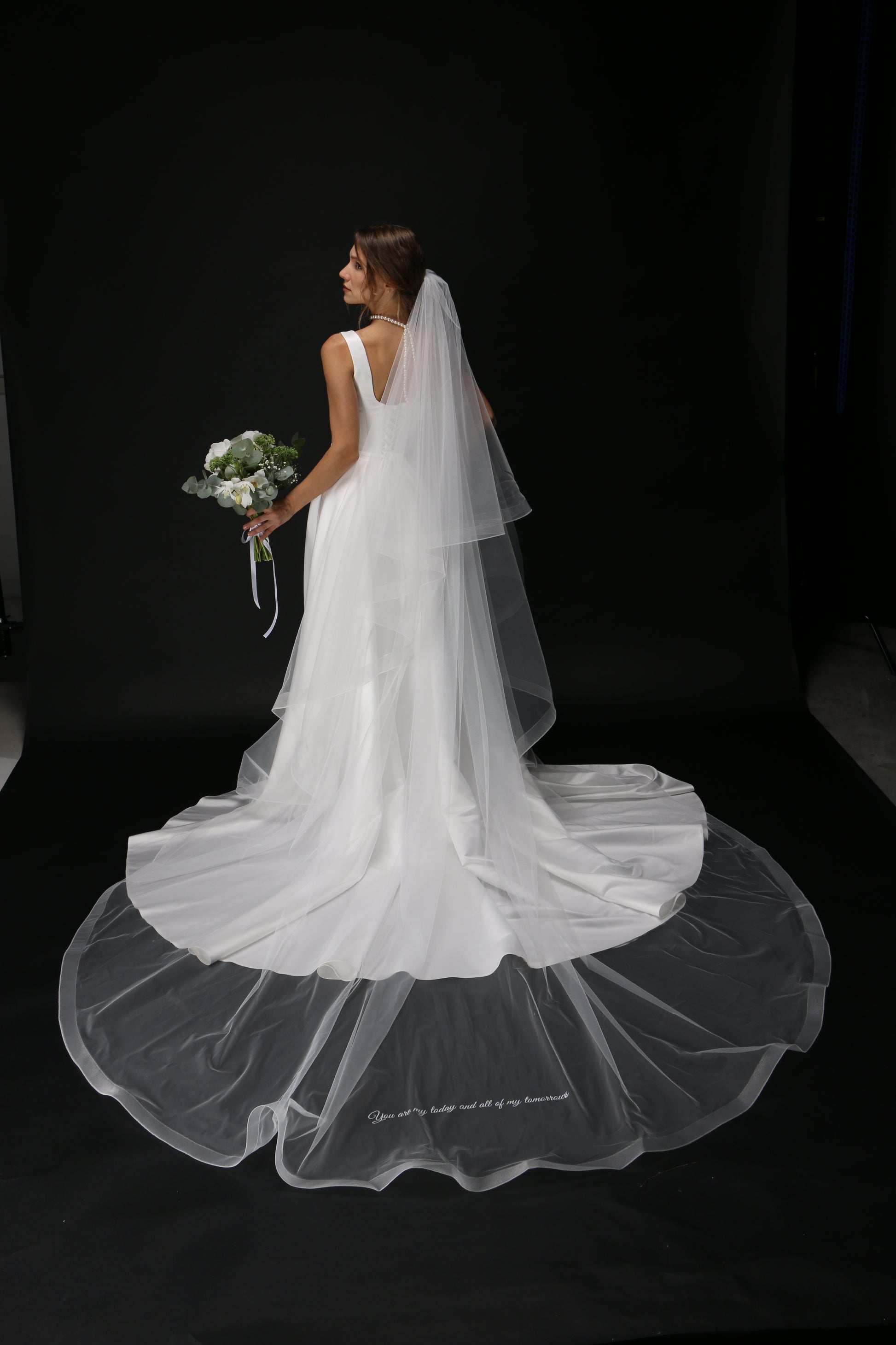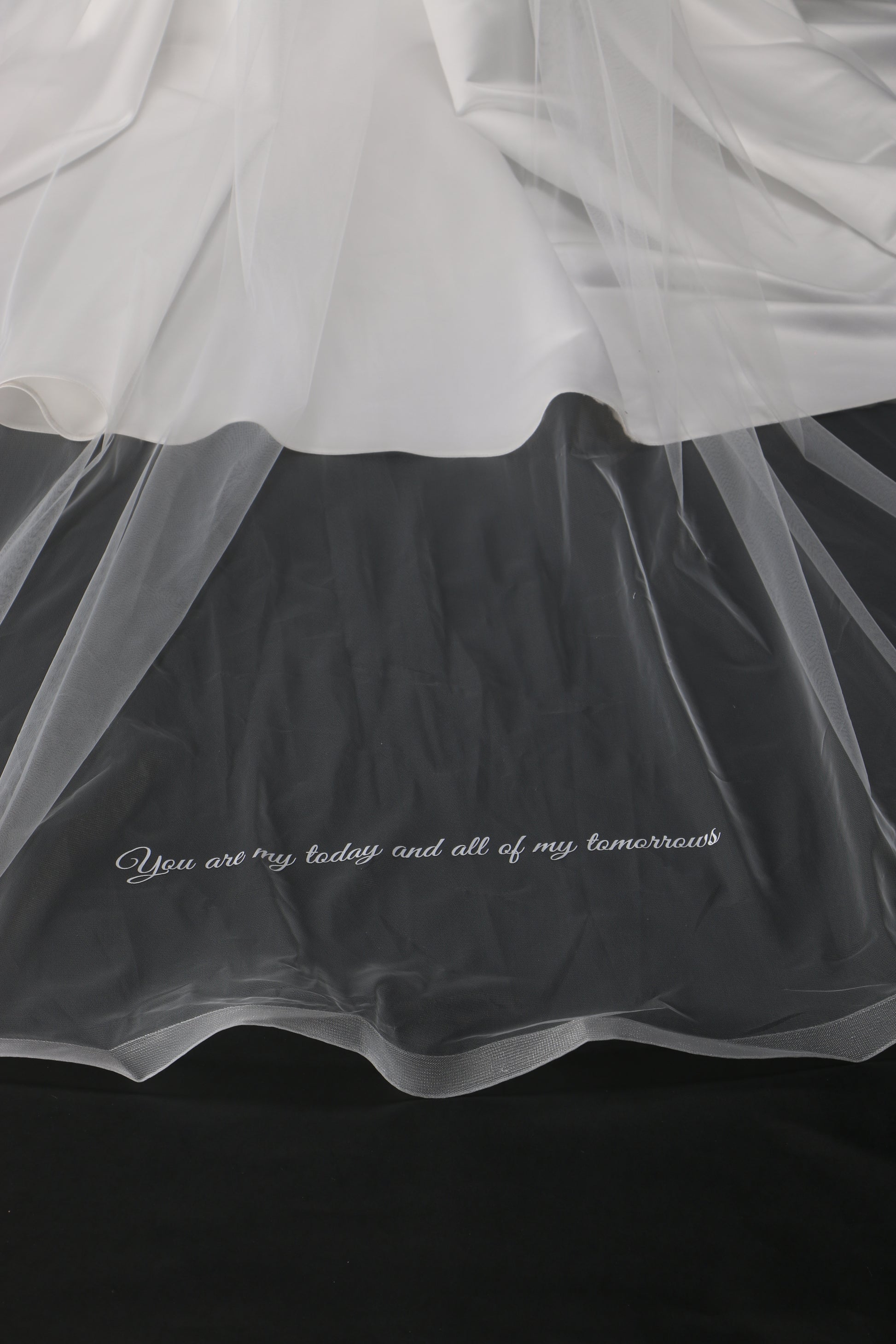 Two-Layer Bridal Veil with Horsehair Edge | Custom Text Print Veil - M1032
