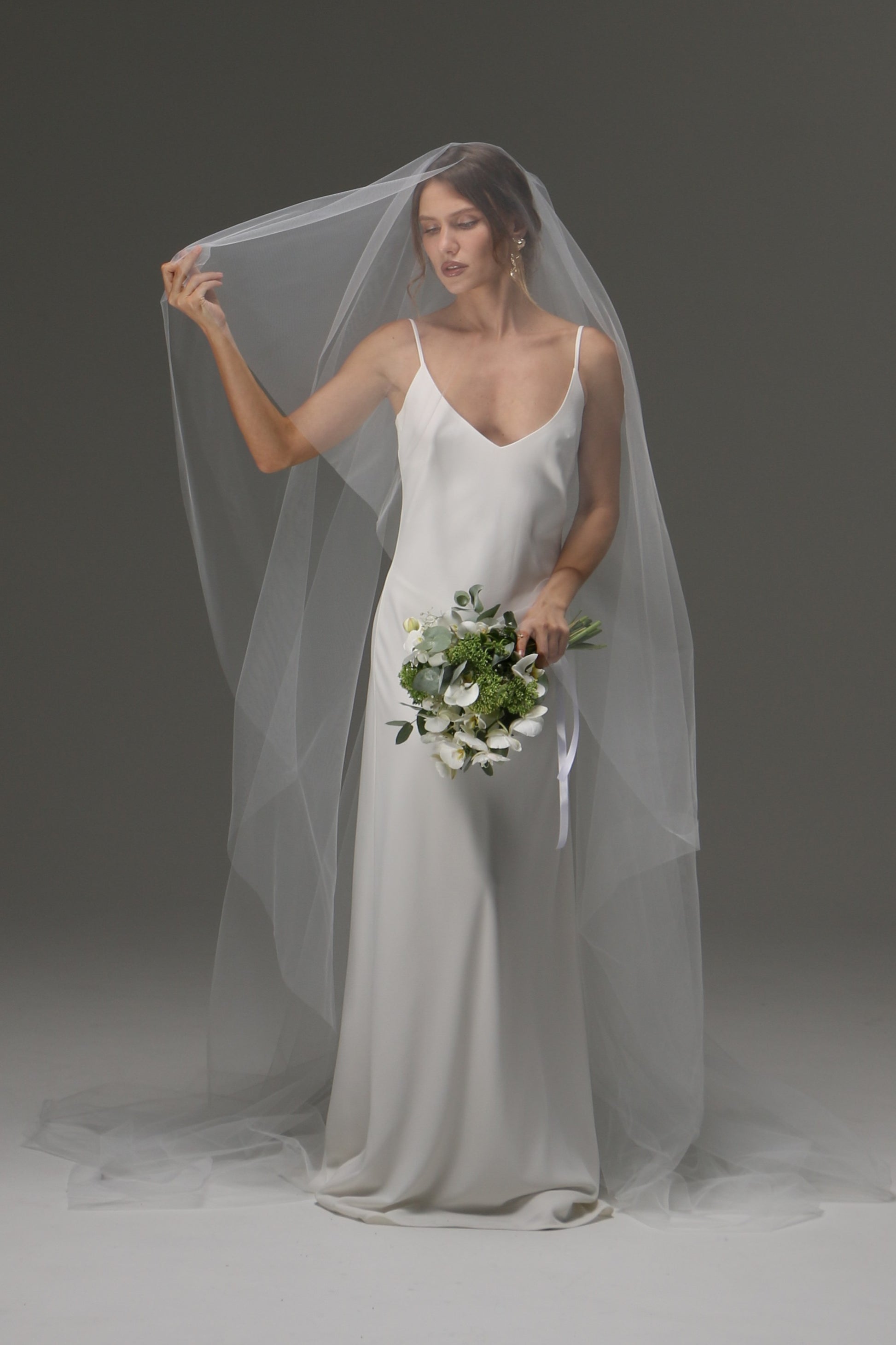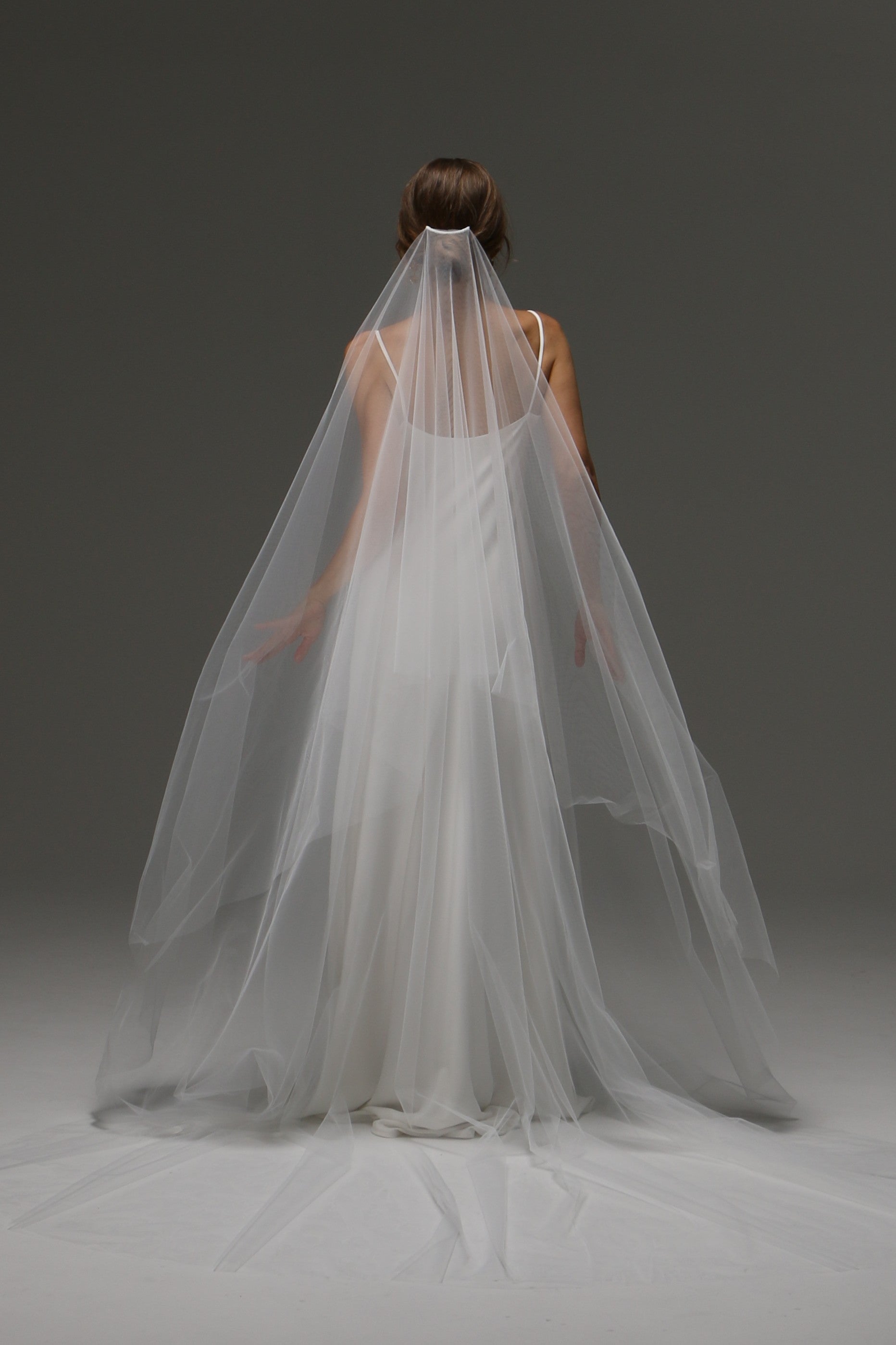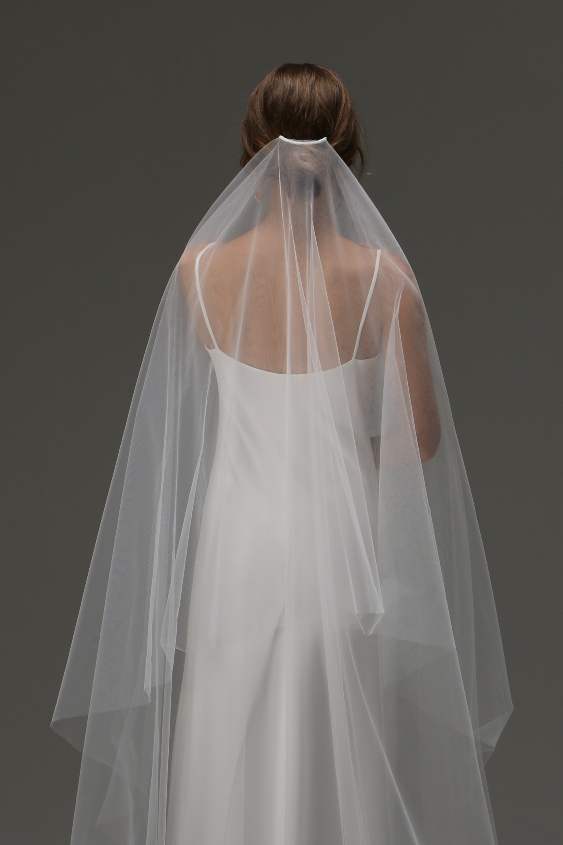 Two Tier Cut Edge Bridal Veil with Blusher – Simple Cascading Chapel Length Wedding Veil - M1034