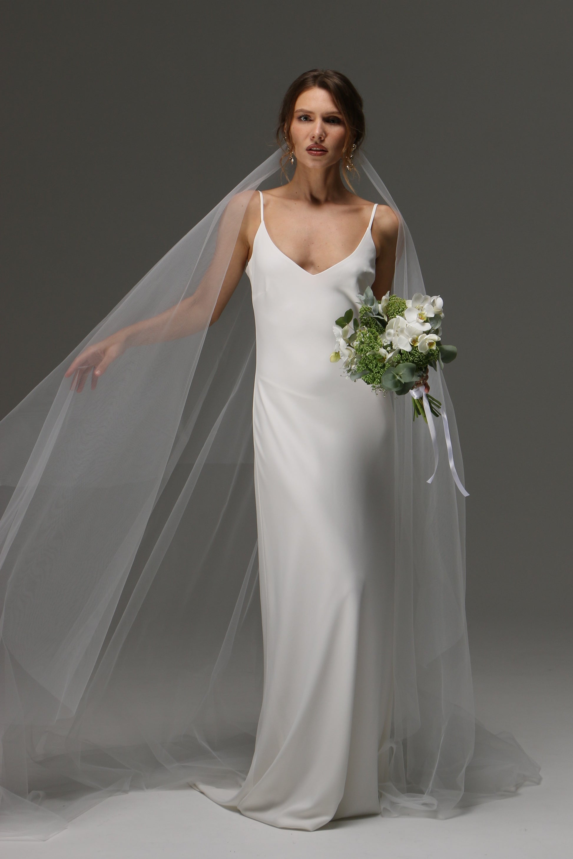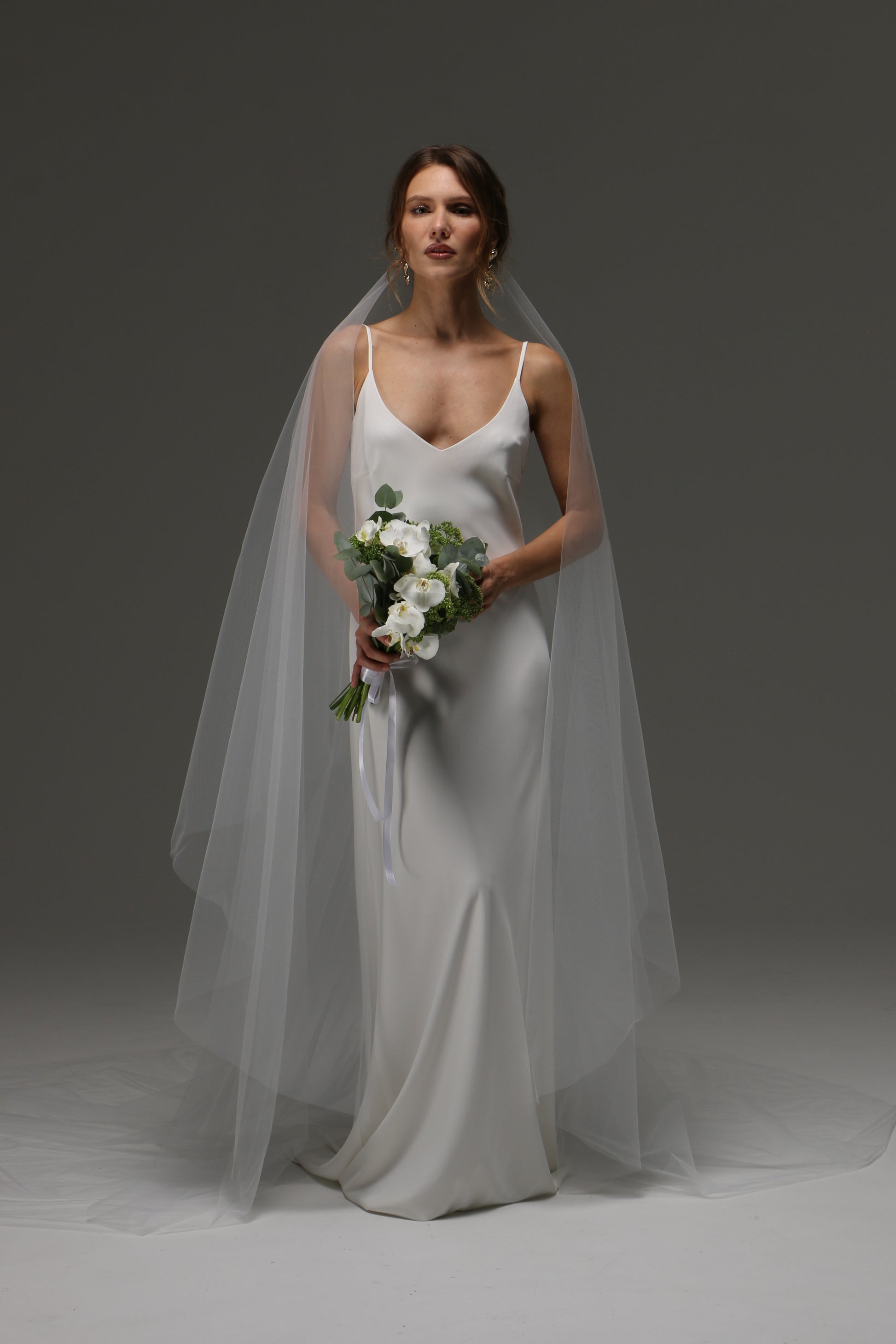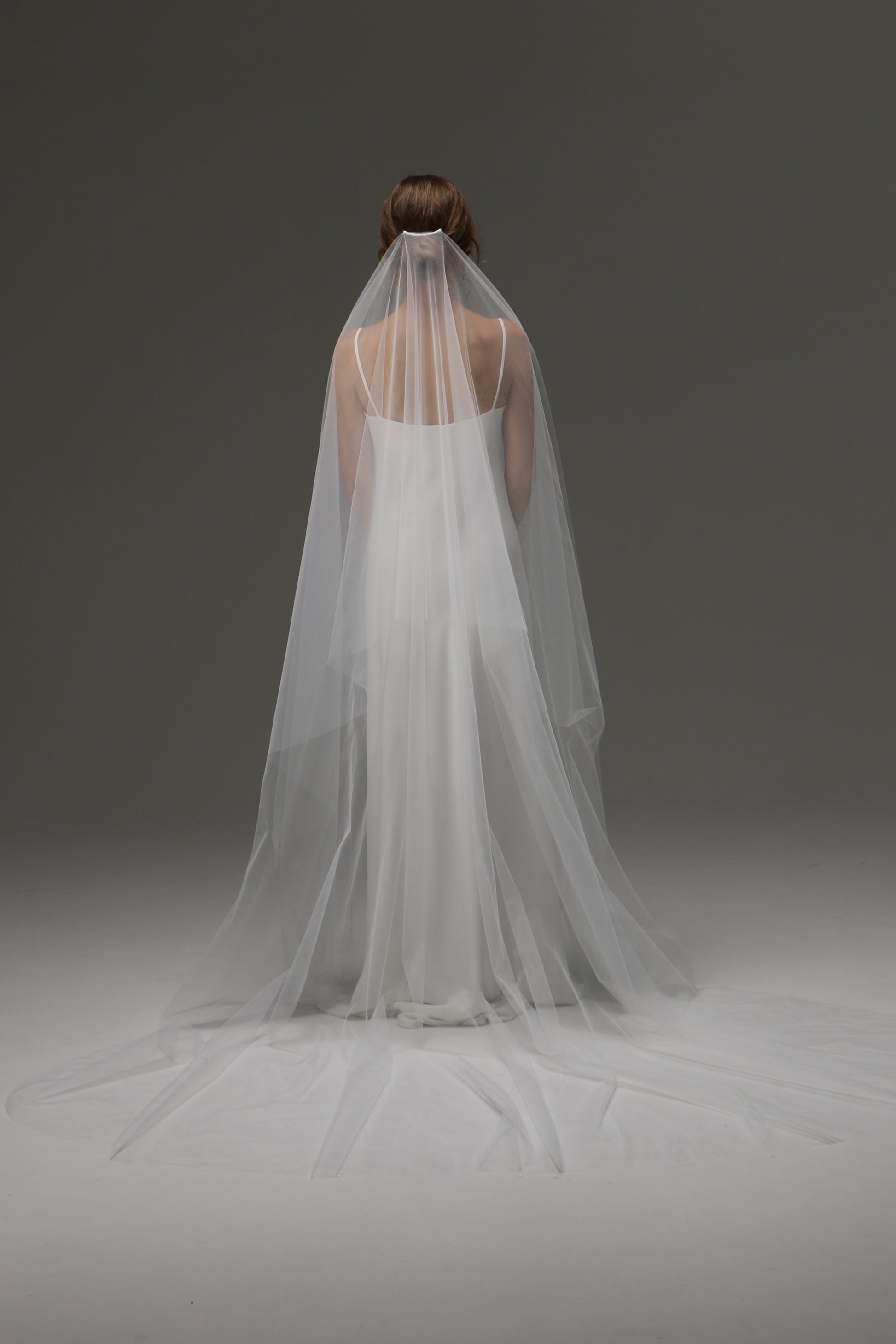Two Tier Cut Edge Bridal Veil with Blusher – Simple Cascading Chapel Length Wedding Veil - M1034